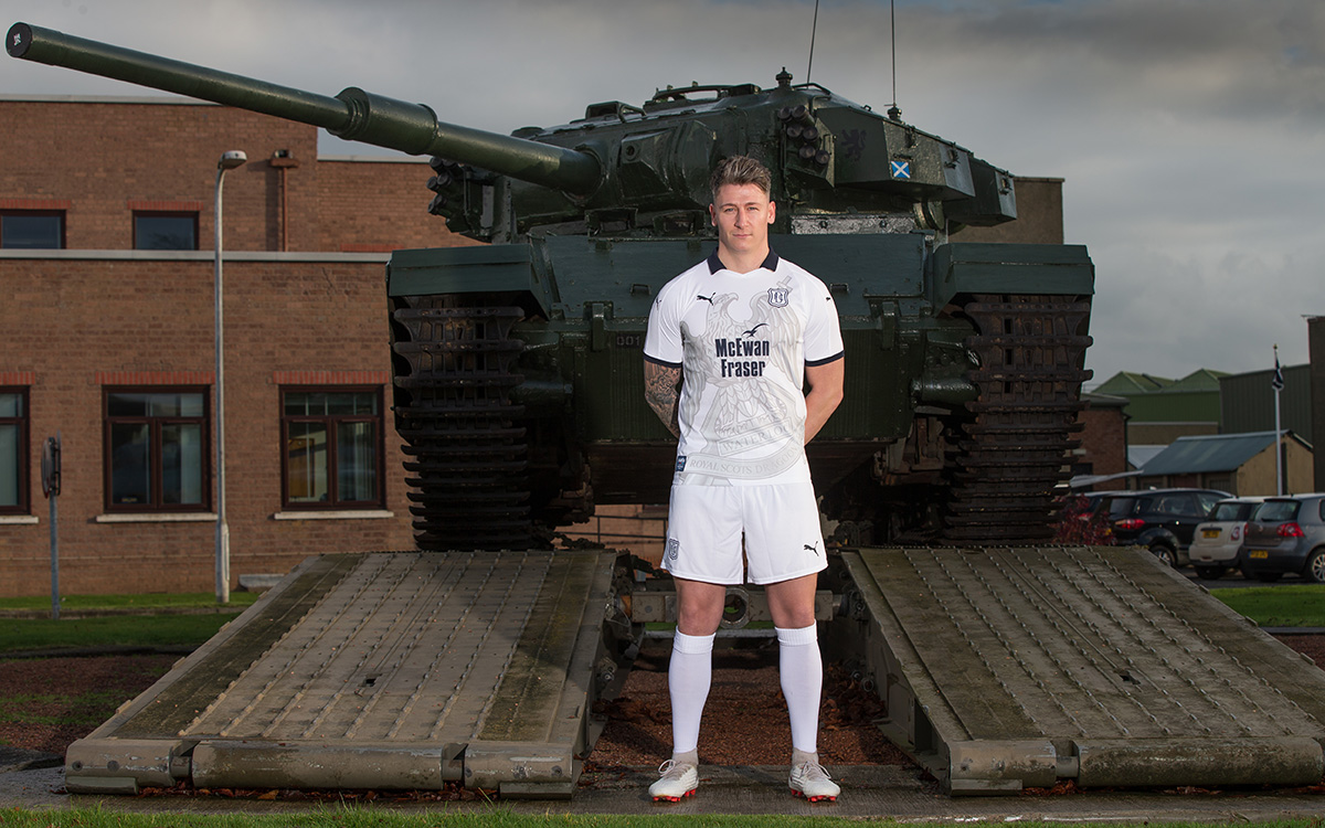 The shirt which includes the Cap badge of the Royal Scots Dragoon Guards will go on sale in the club shop in limited numbers late next week and is available to pre-order now from the Dundee Direct website. Over 10% of jersey sales will be added to the eventual total which we are raising throughout the year for SSAFA.