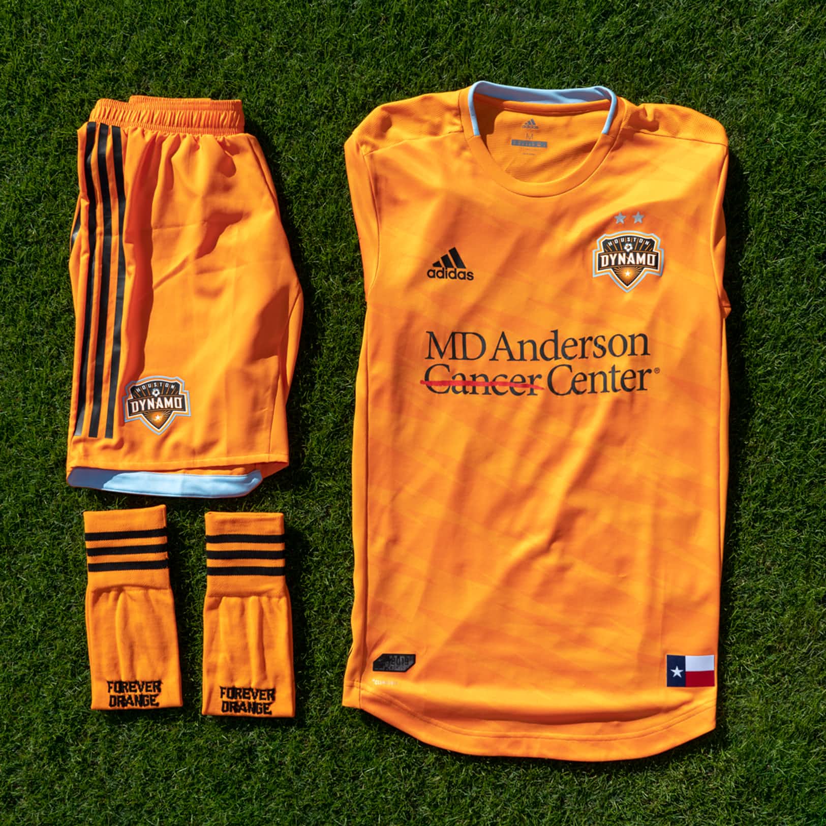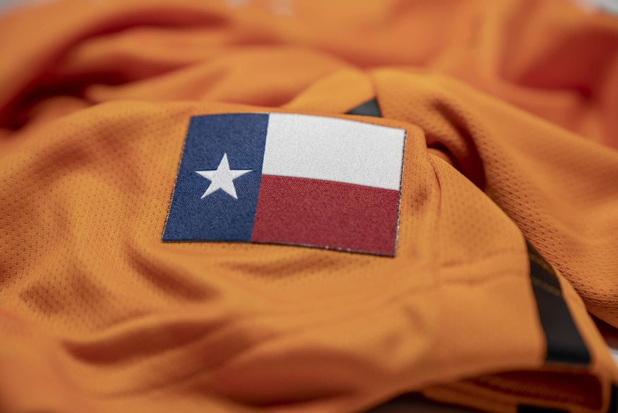 The shirt showcases the club’s iconic orange primary colour, but incorporates Space City Blue on the collar as a nod to the blue-collar mentality that built the city. A sublimated pattern of jagged diagonal stripes evokes classic illustrations of lightning.