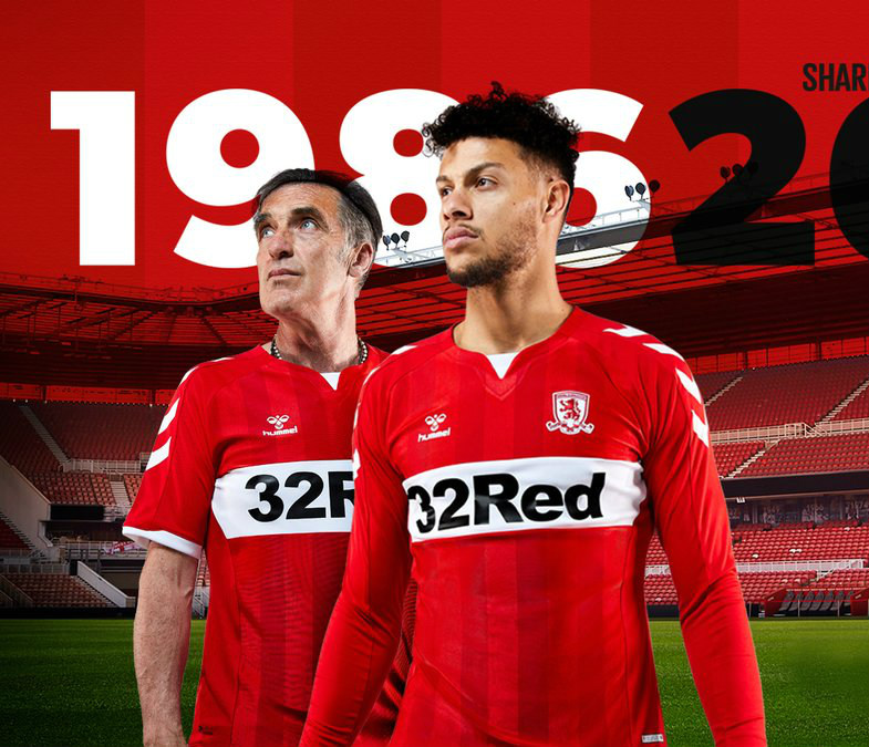 This is the new Middlesbrough FC 18/19 Home football shirt by Hummel. The striking new Hummel home kit design is a tribute to the kit worn in 1986 when the club fought back from the brink of extinction.