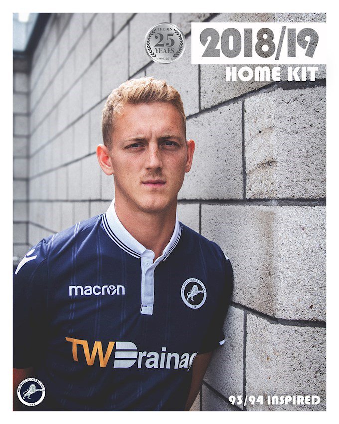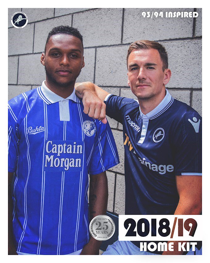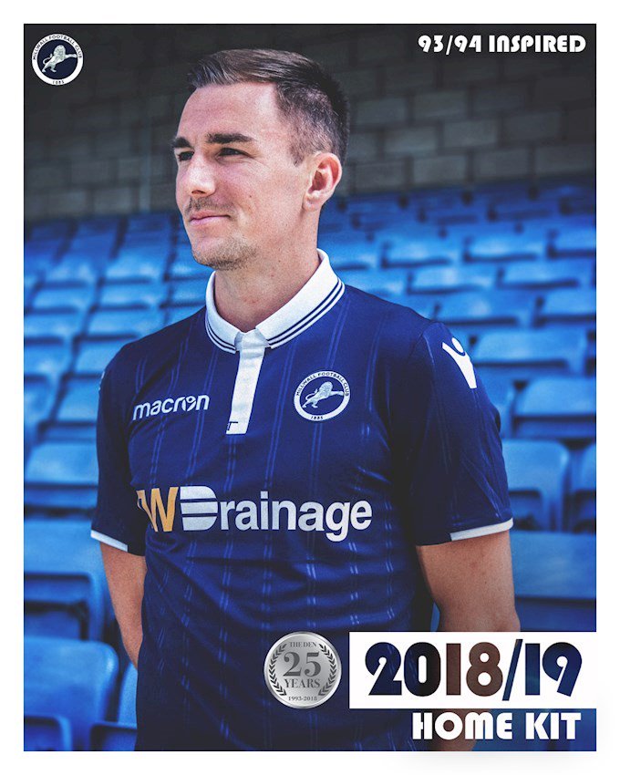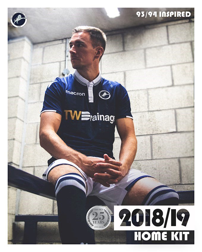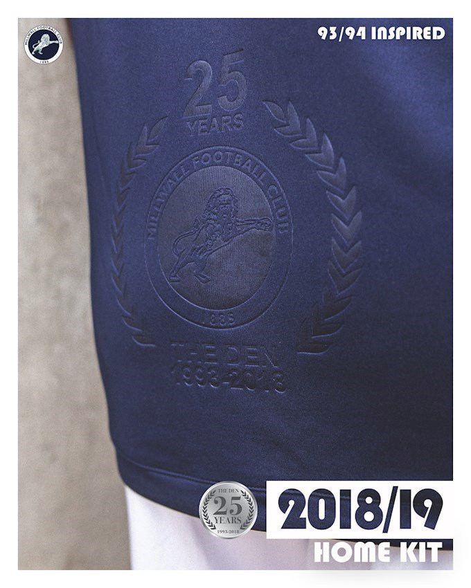 The home kit pays homage to the 25 years that Millwall have spent at The Den. Inspired by the home kit worn by the club in their first season at the stadium, the shirt is a modern classic in Millwall navy, white detailing and embossed pinstripes down the front that reflect the pinstripes worn 25 years ago.