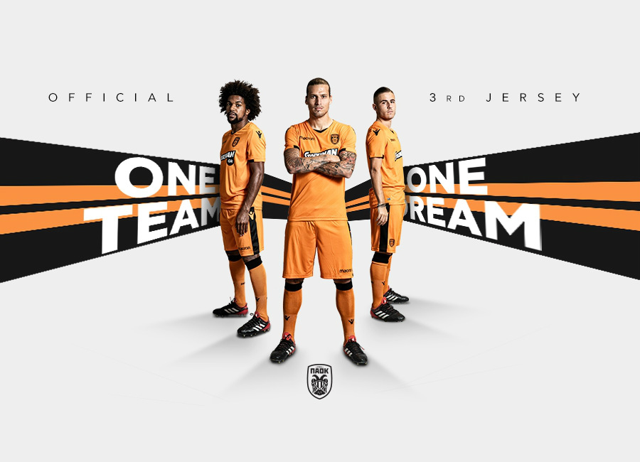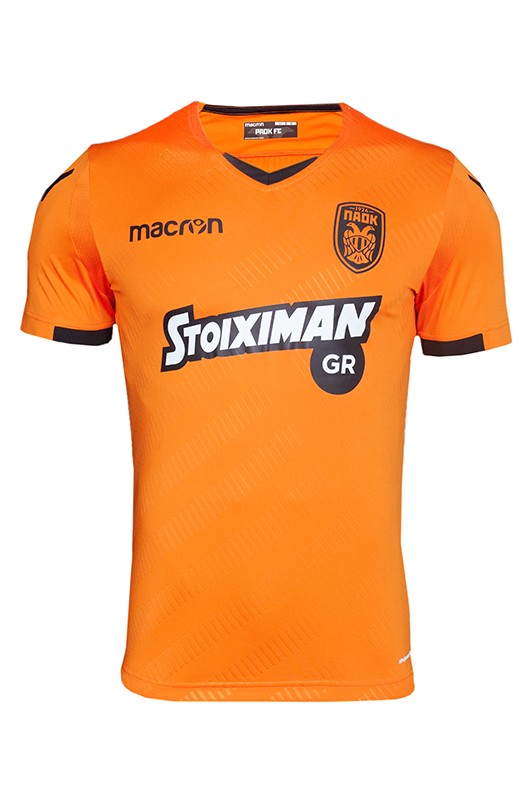 The third kit of ΠΑΟΚ is orange and combines nostalgia for the past and anticipation of the future. The shirt is manufactured by Macron who apply cutting-edge technology. The MPerformanceSystem offers maximum protection from sweat. The new shirt bears the logos of PAOK and of the Italian sportswear company.