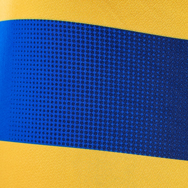 Inspired by the 1990s, the Away Kit is distinctive in style with its thick yellow and blue hoops and a unique V-neck collar with round lines. On show across Serie A stadiums and in European competition during the 1998/99 season, the hooped Gialloblu shirt was also worn in the season after which evidently inspired this version from Erreà for the 2018/19 season with the wider blue stripe on the chest.