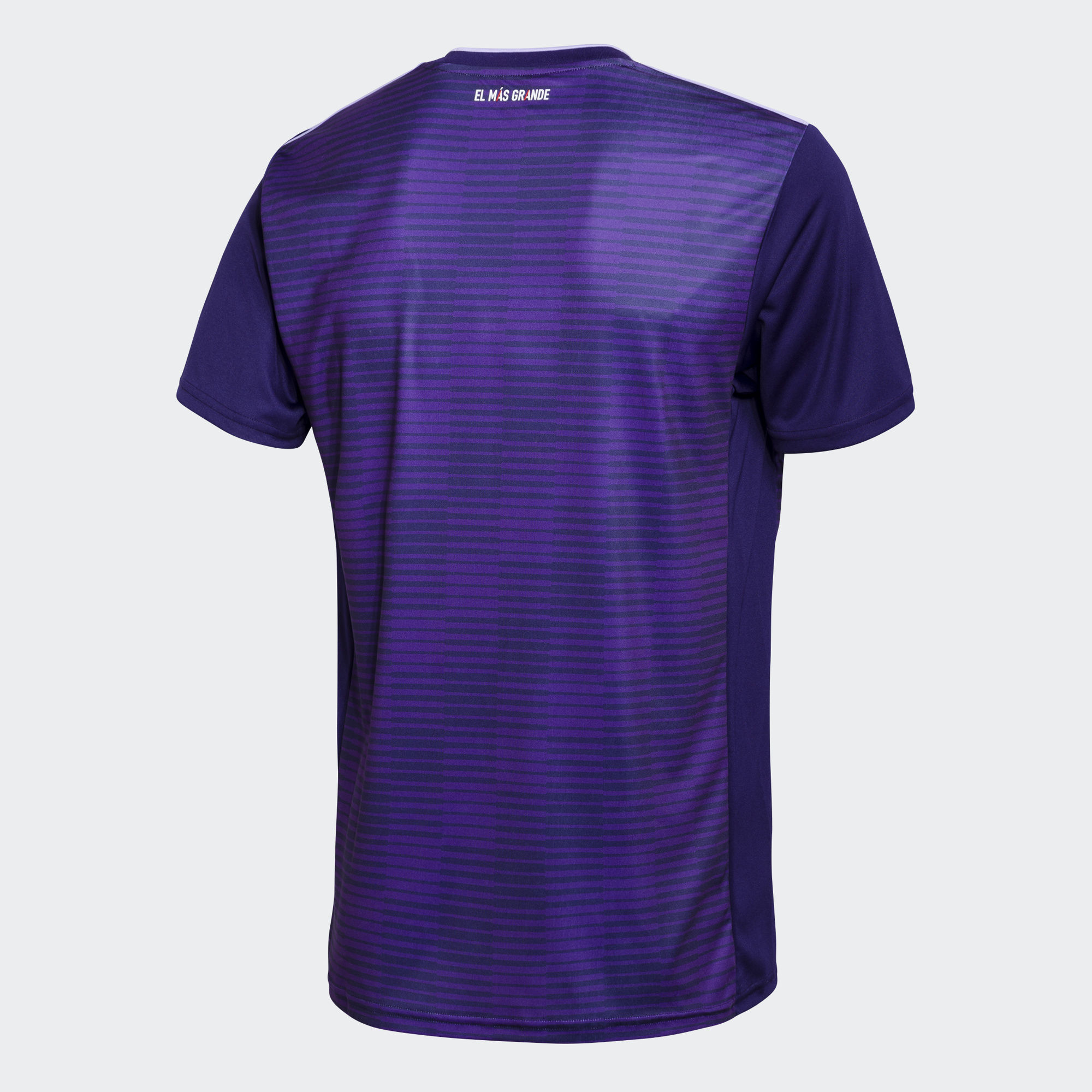 This season, violet returns to the Millionario’s jersey. This colour was last used in the 2008 season, when River won the Clausura (“Closing”) Tournament. Previously, a violet shirt had been worn as an alternate jersey during the 1969, 1971 and 1975 seasons. The kit also includes shorts and socks in shades of violet.