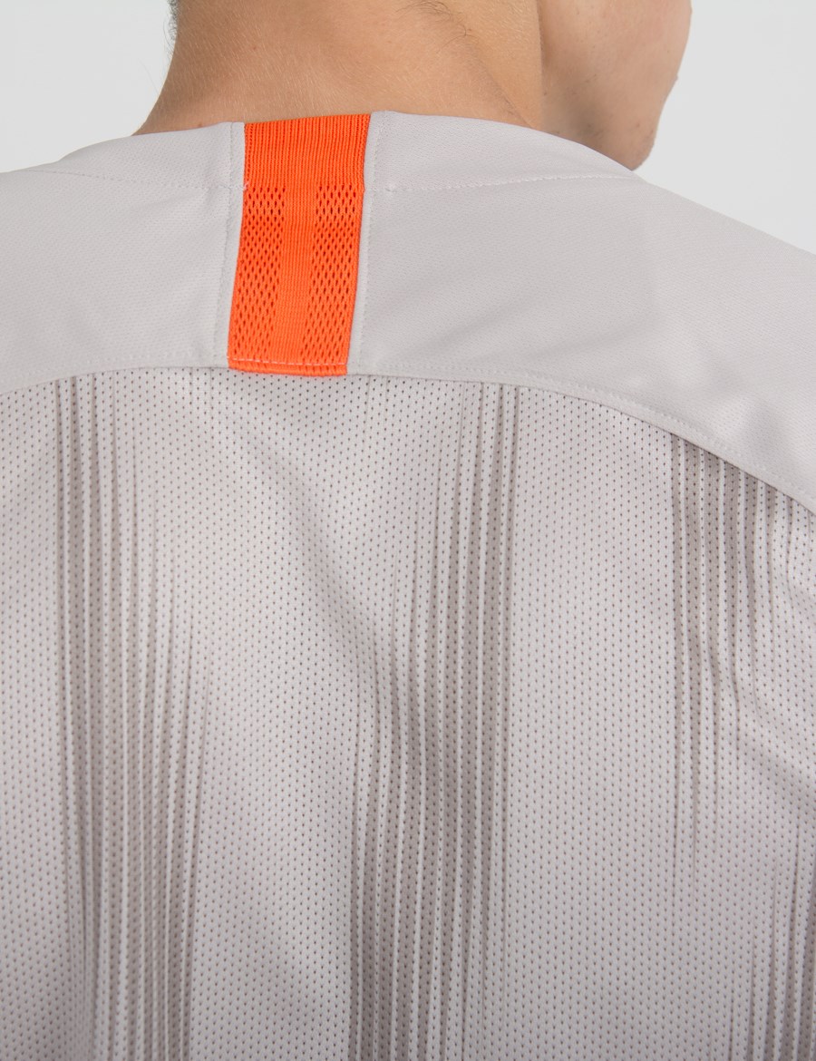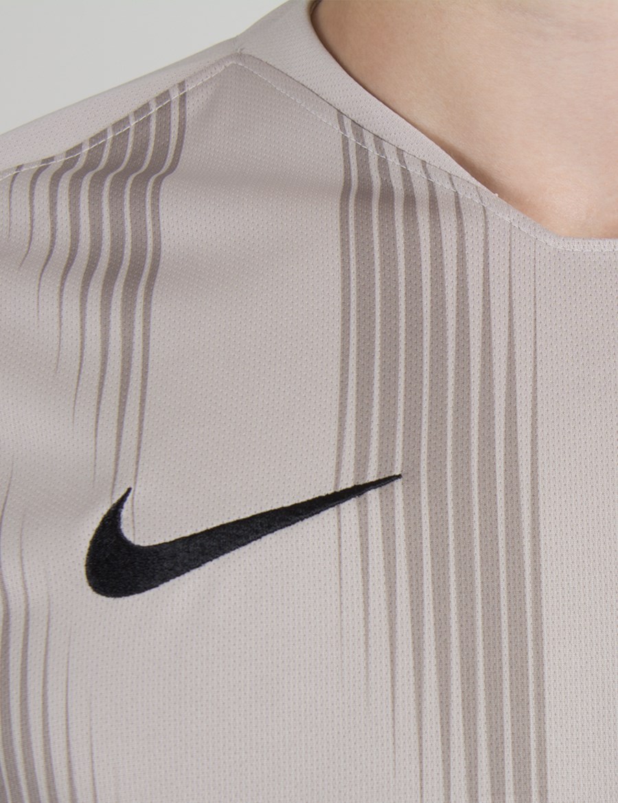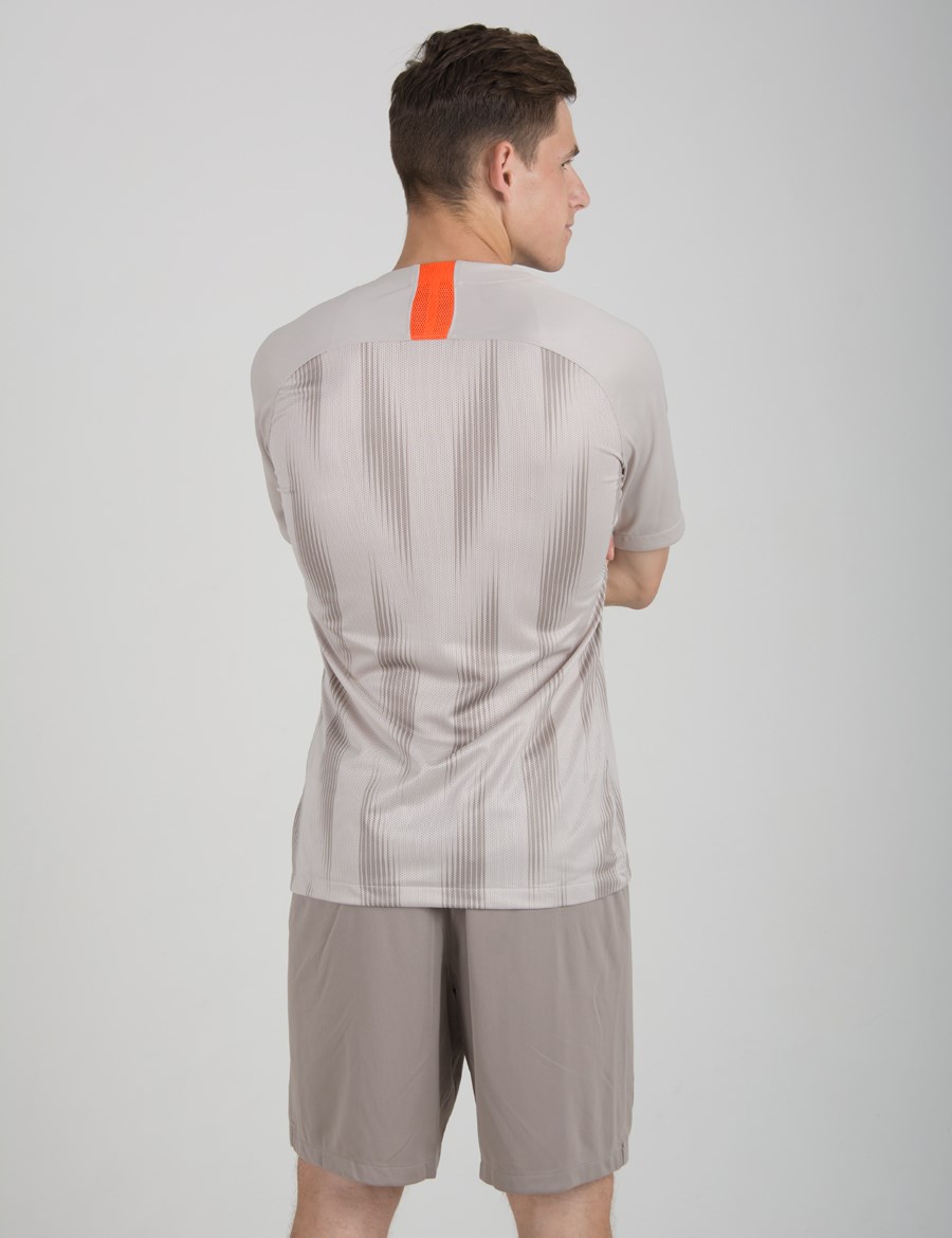 The next level - precisely this meaning is embodied in the outfit featuring entirely new colours: striped grey and beige. Taking care of the environment, Nike used 100% recycled polyester to produce the kit fabric.