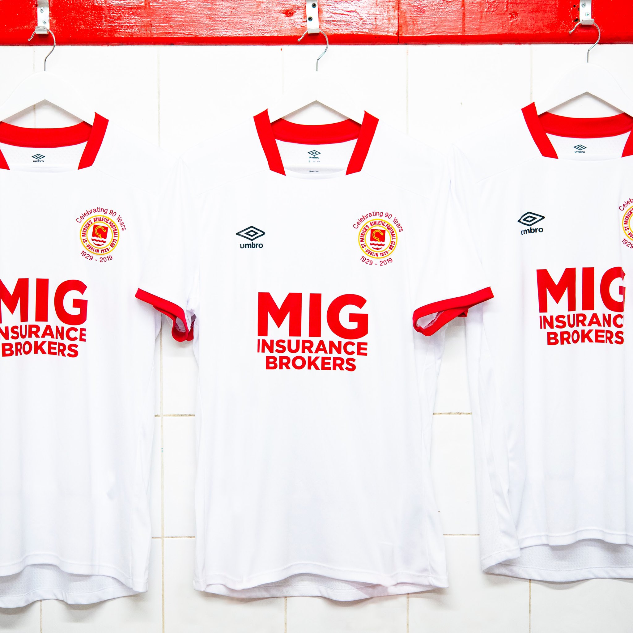The 2019 Away kit incorporates a clean White and Red design. To celebrate the clubs 90th Anniversary, it contains a commemorative crest to mark the monumental occasion.