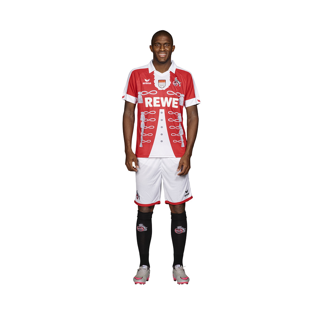 It is that time of the year again! Karneval is upon us in Cologne, which also means 1. FC Köln is releasing a brand new Karneval kit. The new Karneval kit pays homage to the Roten Funken, one of the oldest and traditional of the many Karneval groups in Cologne. Following the white Karneval kits in 2013 and 2014, the 2015 kit is red and heavily influenced by the uniform of a Roten Funken Officer. The kit can be purchased from the online shop as well as all fan shops around the city.