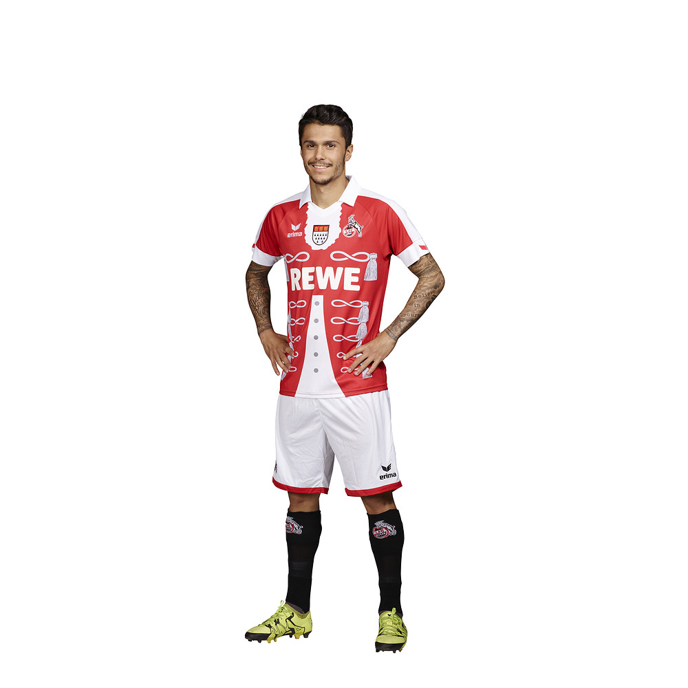 1. FC Köln will wear the new kit in their home fixture against Mainz on November 21st, 2015. In accordance with the traditional style of the Roten Funken Officers, the FC players will complete the unique kit with white shorts and black socks. The kit is now available for 89.95 Euros (79.95 for kids). Fans will also have the opportunity to purchase an additional training jacket, fitting for the upcoming cooler temperatures.