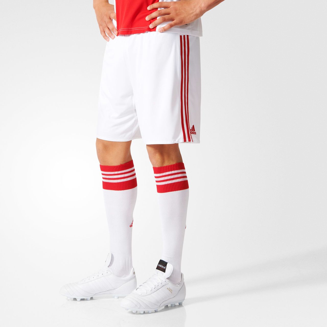 In comparison, the shorts and socks are very simple, in the familiar white with red.