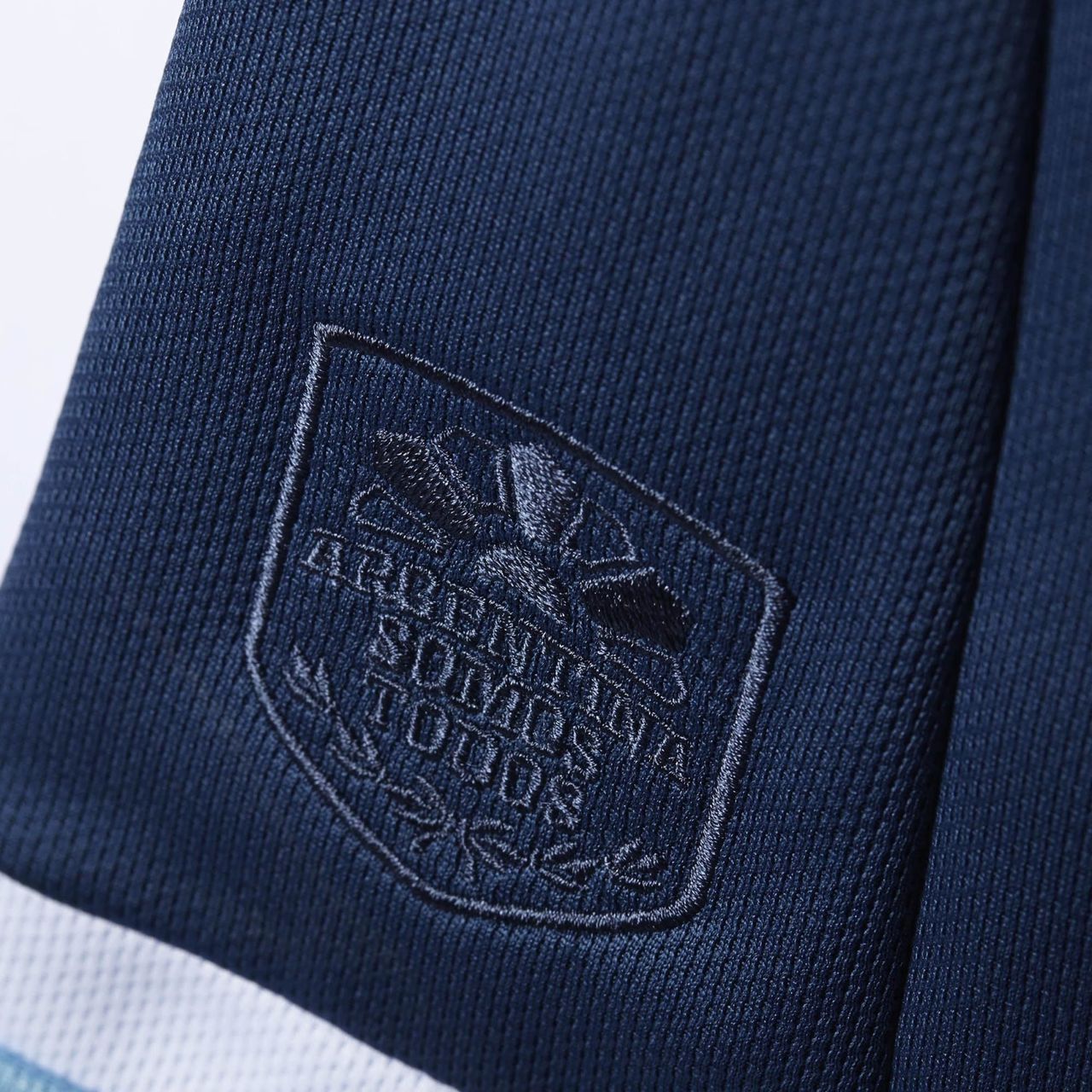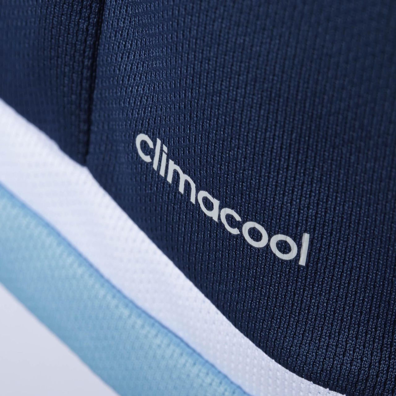 The navy shirt, recently launched, is trimmed on the hem by white and sky blue, with the former matching the adidas logo and stripes on the shoulders. The cuffs are are even darker hue of blue and the crest full colour, with a simple overlapping V-neck collar to finish off the effect.