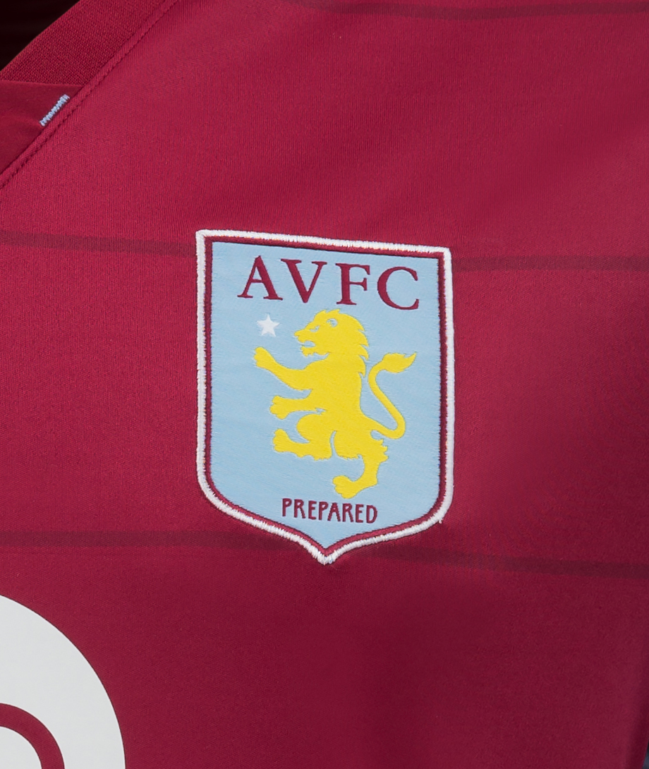 The home shirt devotes Aston Villa heritage for supreme club honour with its famous claret colour, collared neck and the roaring lion crest on the chest.