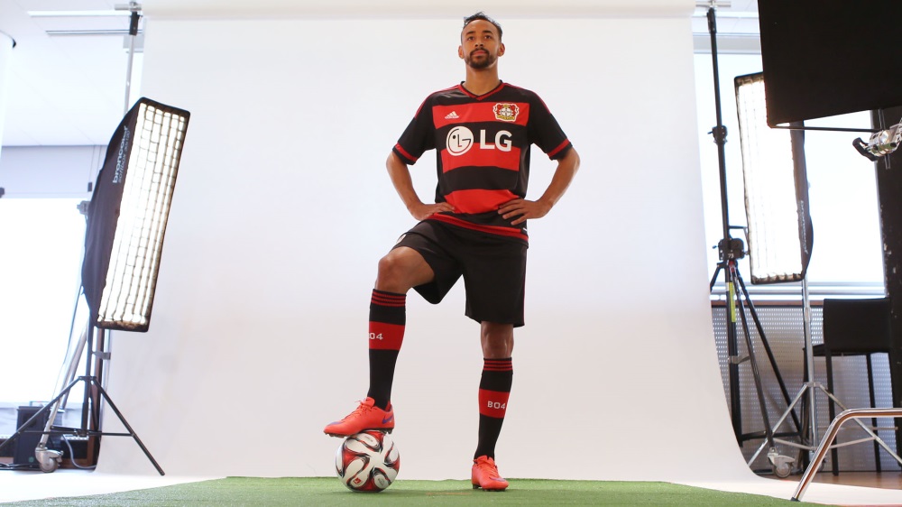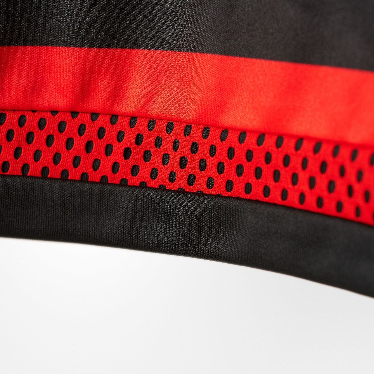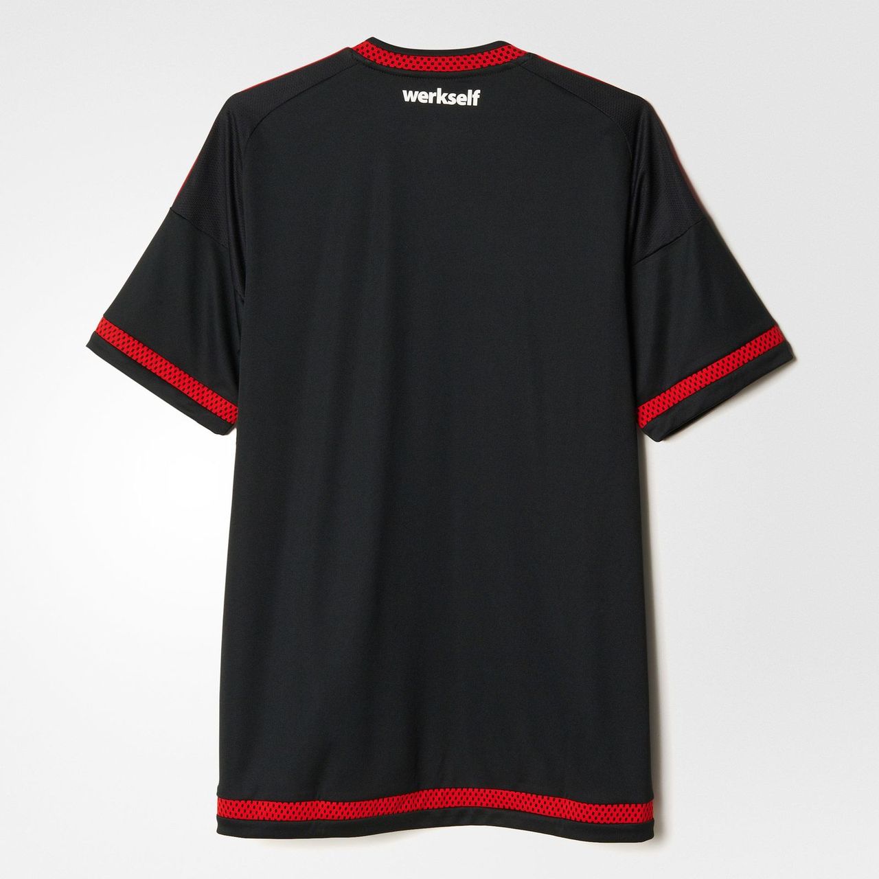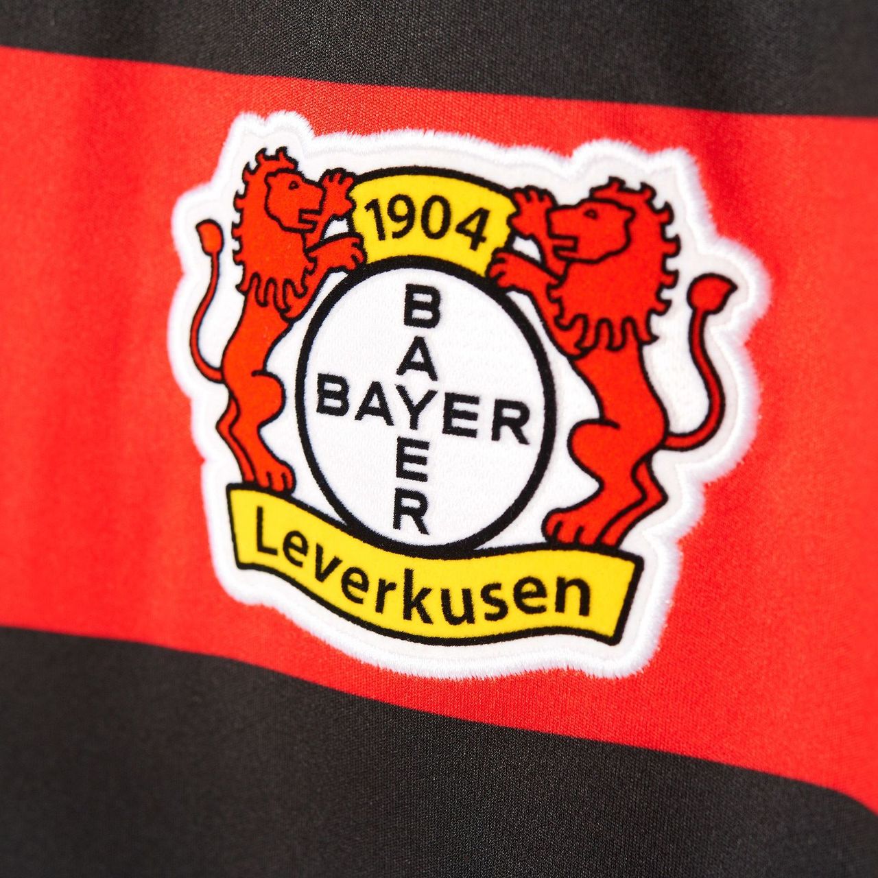 The new Bayer 04 Leverkusen home shirt bears a certain similarity to the kit worn by Germany at last year’s World Cup in the games against the USA and Brazil. The black and red represents the traditional club colours of Bayer 04.