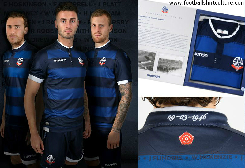 Manufactured by Macron, the limited edition shirt features the names of the 33 individuals who lost their lives in the Burnden Disaster in March 1946 printed within the fabric.
