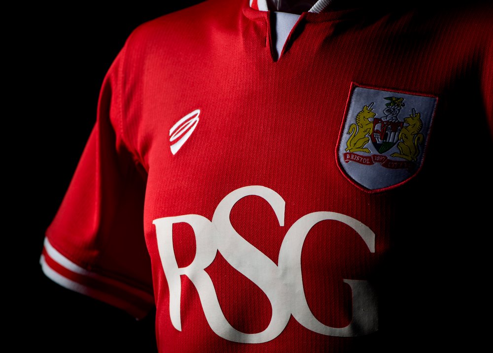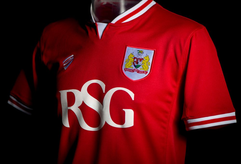 The design and material is bespoke for Bristol City with a brand-new pattern, still featuring the sponsorship of RSG and Poplar Insulation.