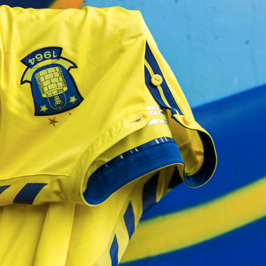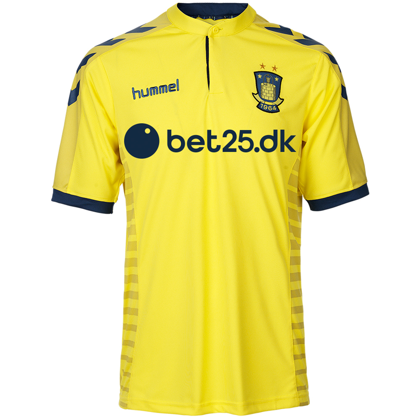 The new 2015 shirt is in yellow with a neat grandad collar and blue chevrons running down the sleeves. The logo of gaming company Bet25 appears front and centre, just below the club crest and hummel workmark logo. The sleeves are finished off with thin blue cuff trim.