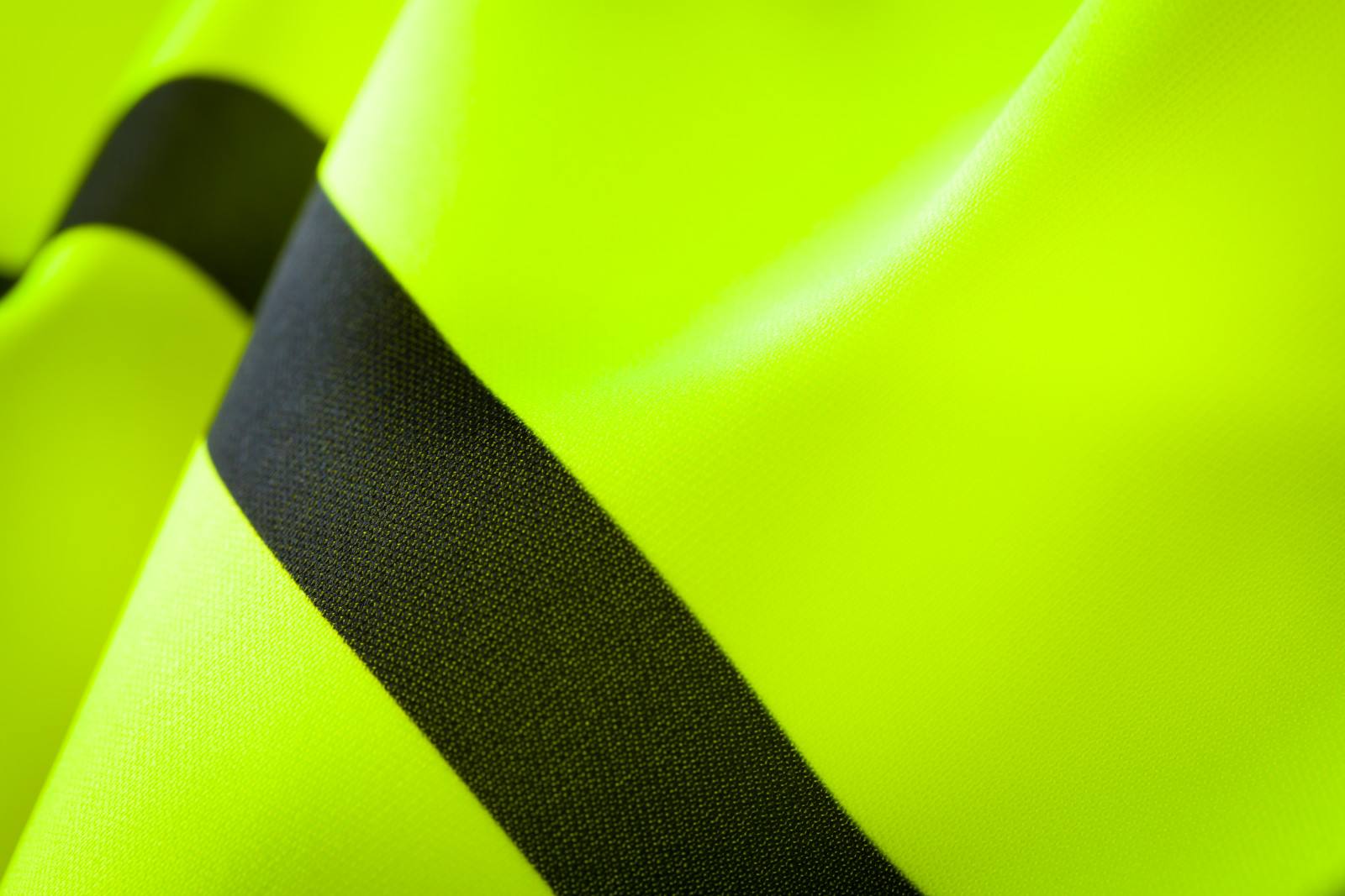This kit is completed with fluorescent yellow shorts and black and yellow hooped socks.