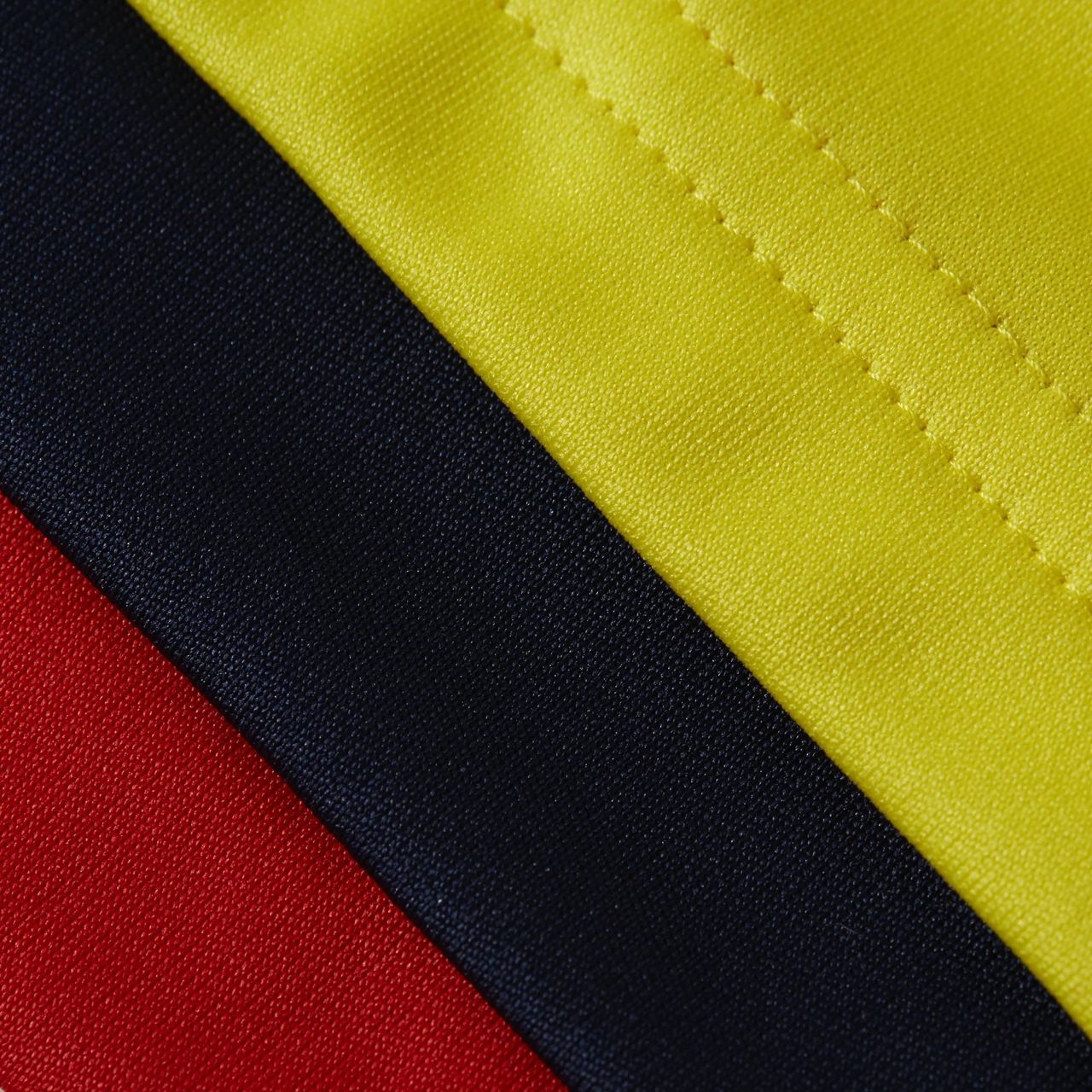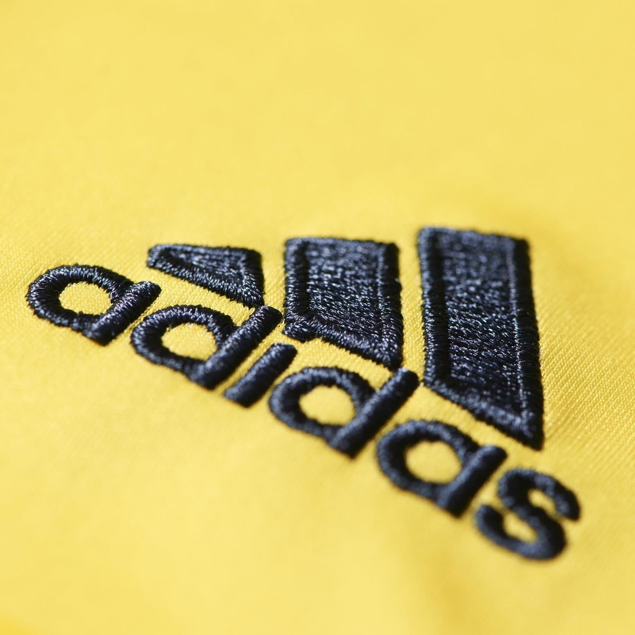 The yellow shirt has tonal grandients in the watermark, with navy and red details. The crest is in full colour and the navy adidas logo ties in with the neat button-up collar.