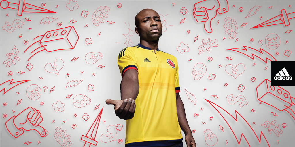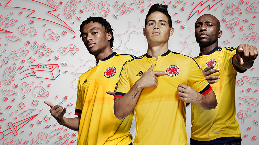 This is the new Colombia adidas Home football shirt and kit, to be worn in the upcoming Copa America 2015 tournament.