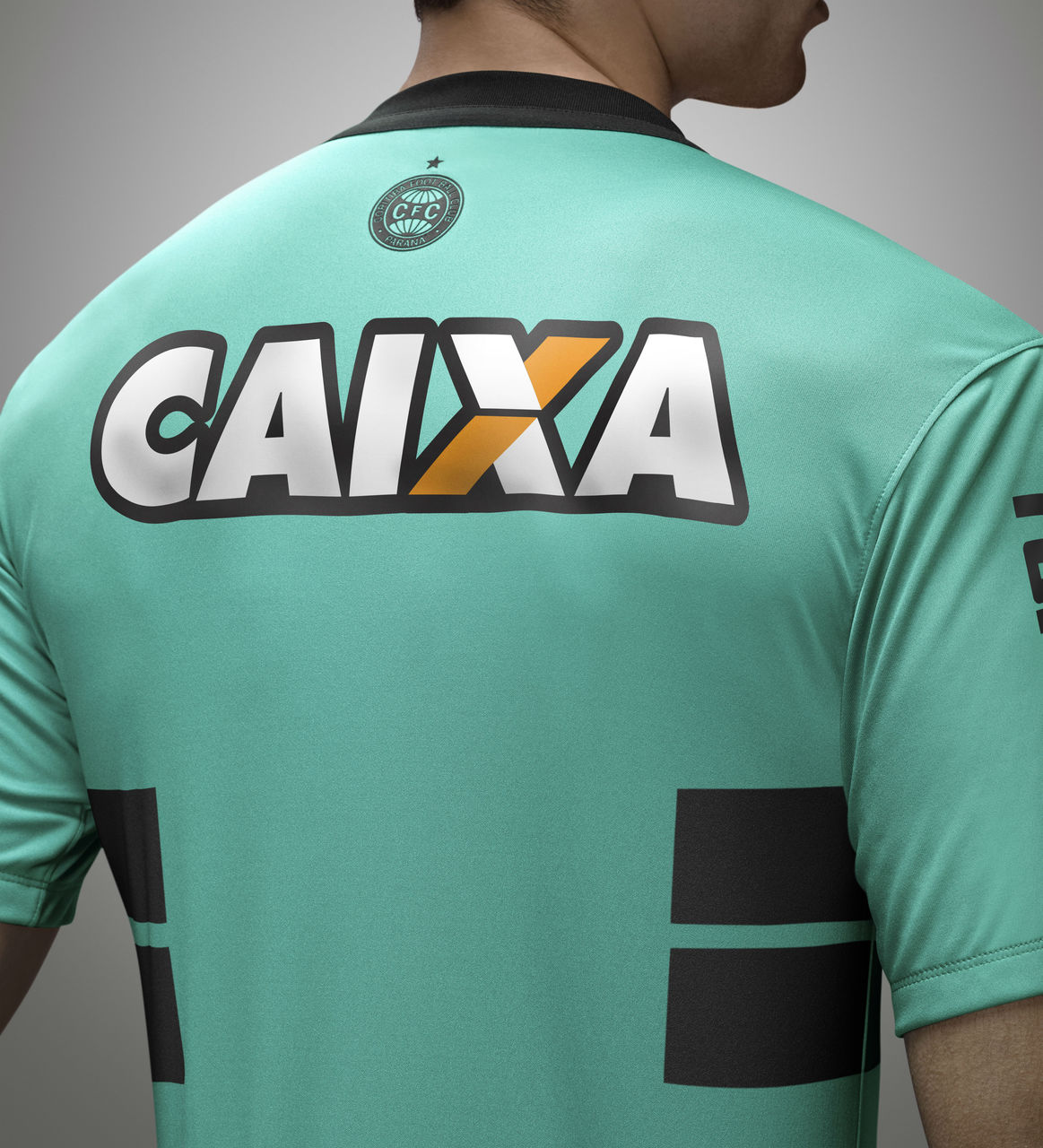 The new shirt, in a shade of green to reflect the traditions of the Brazilian side, the famous horizontal bands are in black - which matches the Nike Swoosh logo and the segmented collar design. The crest appears mounted on the horizontal bands and most other branding and logos also contrast in black.