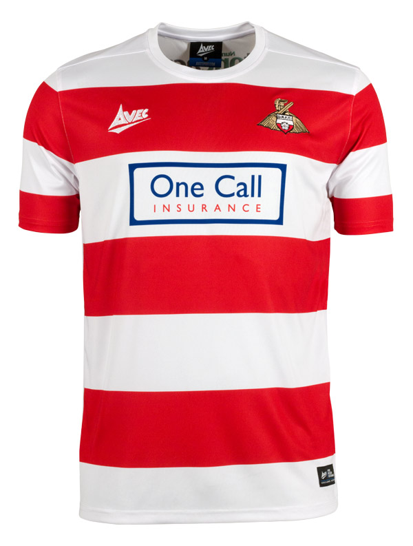 This is the new Doncaster Rovers 2015/16 Home football shirt manufactured by their official Kit Supplier Avec.