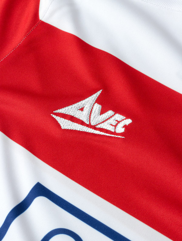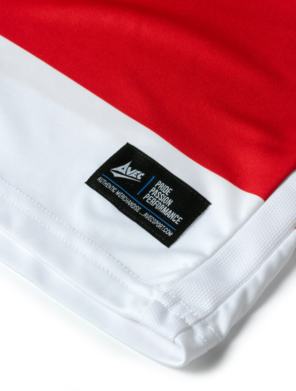 The return of a thicker red and white hoop shirt was voted by supporters earlier in the year and has been designed with a white round neckline. It features Avec’s Vapeurvent side and shoulder panelling to allow air to ventilate to the body.