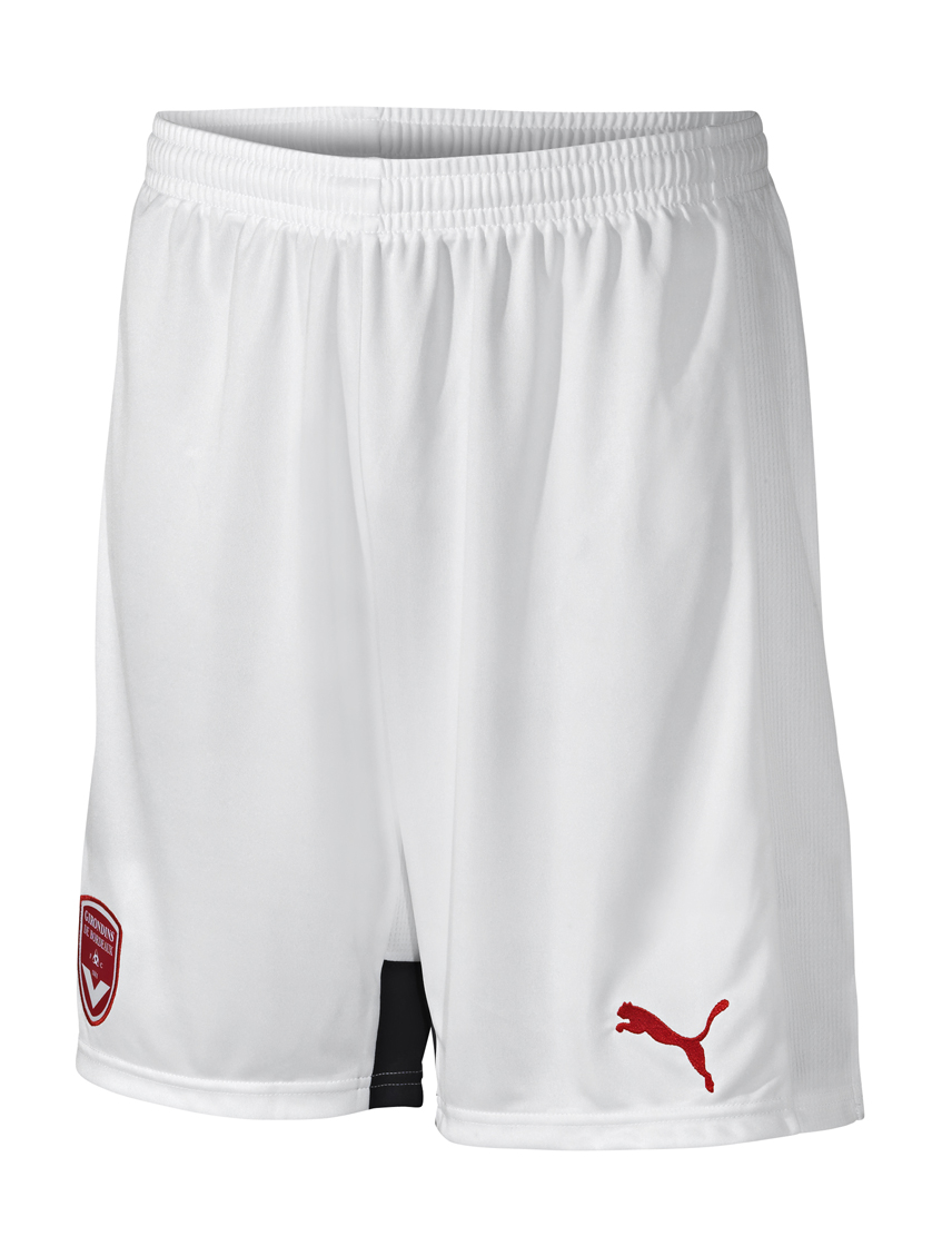 With little embellishment, the shorts and socks are white with navy trim, and the badges appear in red once again.