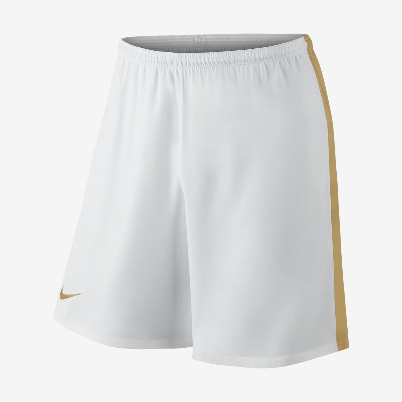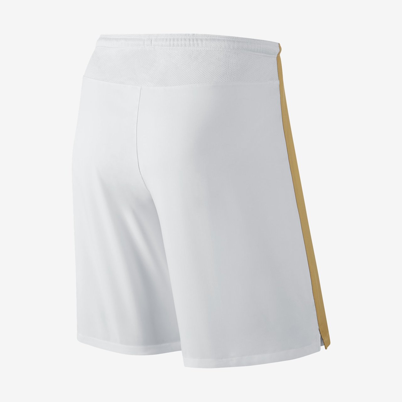 The shorts, tying in with the shirt's sponsor, are in white and carry a gold stripe on the hip, and the socks are also in red.