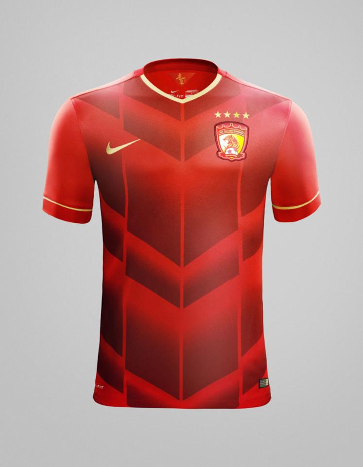 This is the recently-unveiled Guangzhou Evergrande Taobao Football Club Home football shirt and kit, by Nike, for the Chinese champions' 2015 campaigns.