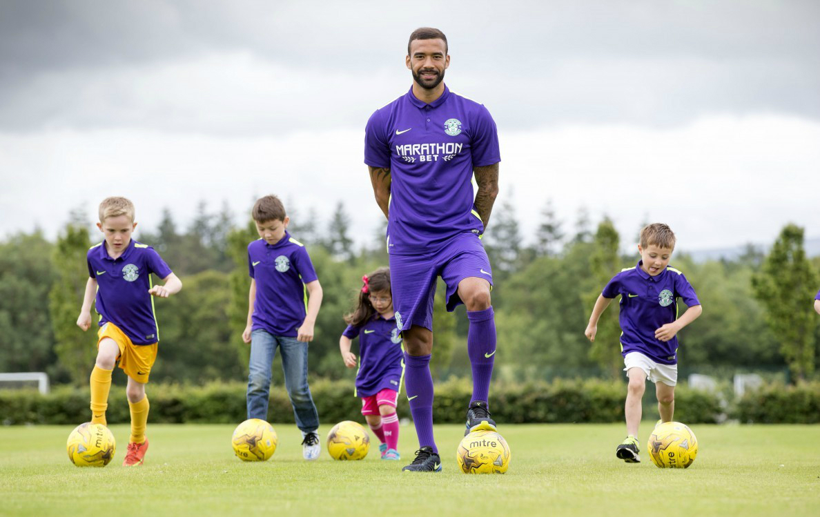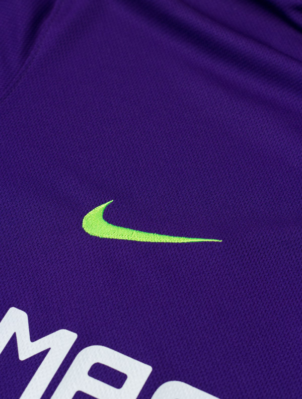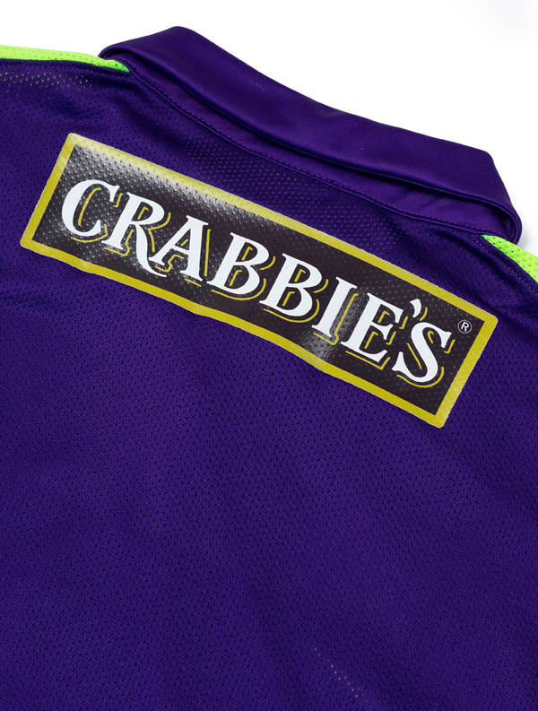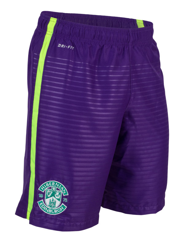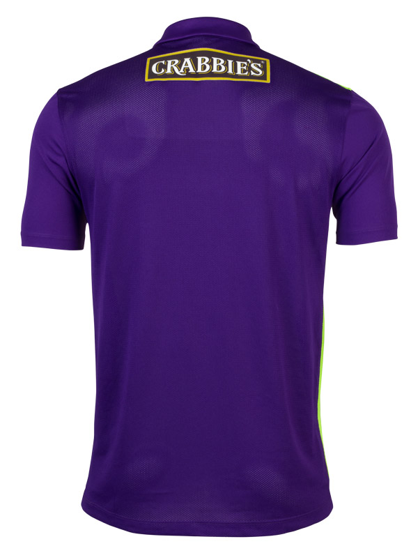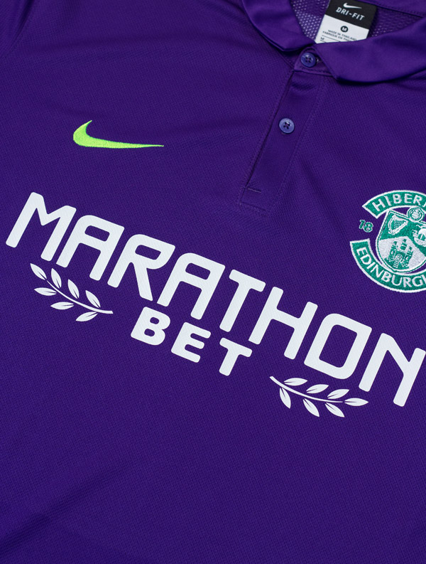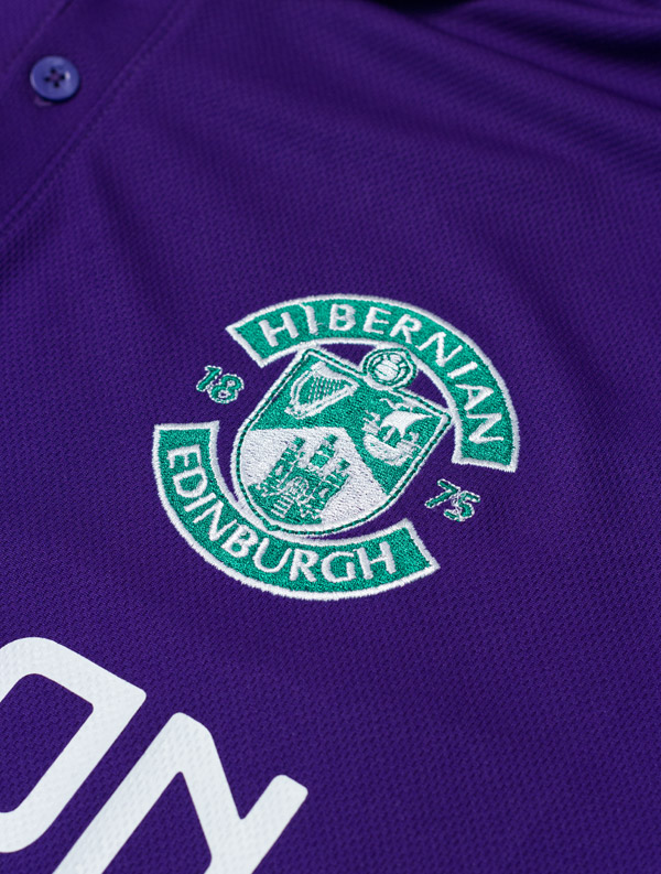 The purple shirt has a stand up collar with 2-button placket. The warp-knit mesh back panel enhances ventilation with contrasting mesh fabric on shoulder and side panel. The shirt is complete with the Hibernian FC club crest.