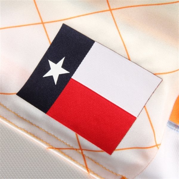Two carryover features from last year's jersey are: The Texas state flag at the bottom left corner of the jersey front; and the words "Forever Orange" on the back of the jersey.near the neck line.