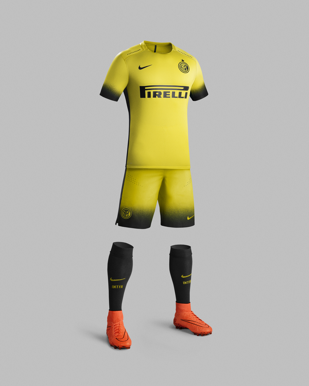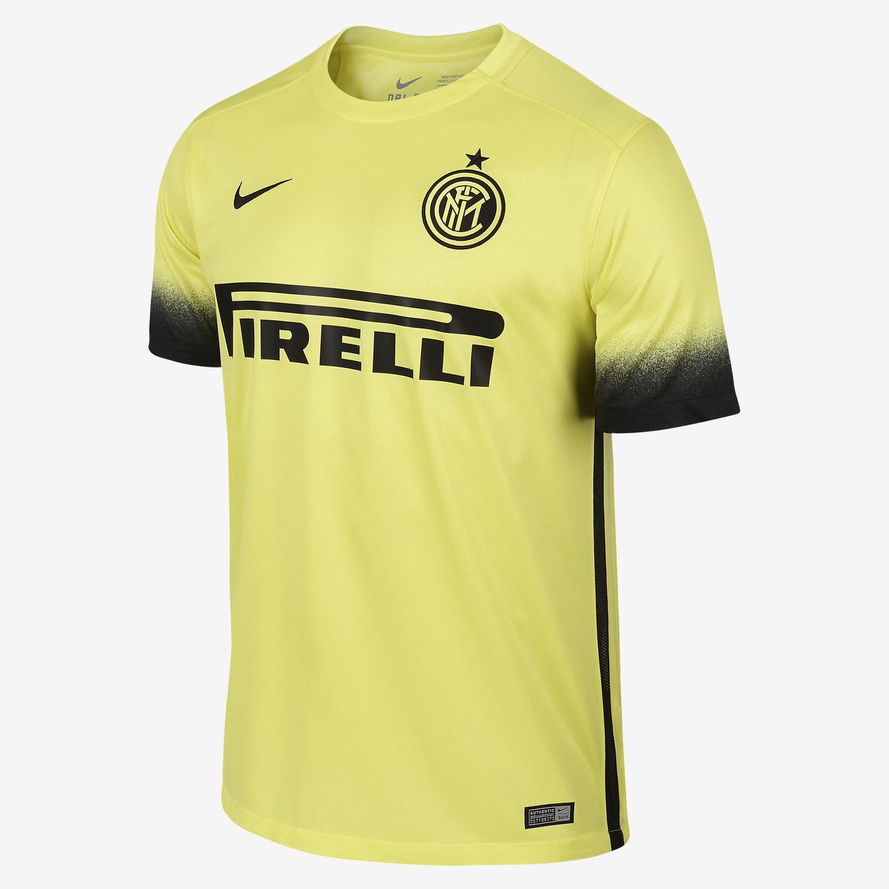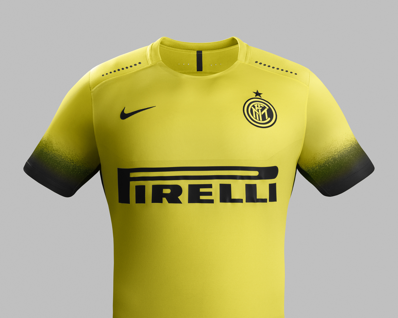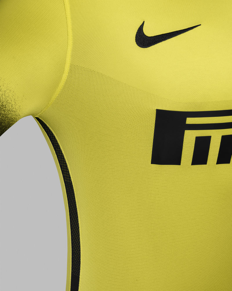 Inter Milan will play some of its most significant 2015-16 away matches in a bold yellow kit that represents a modern reimagining of one of the club’s traditional away looks. Yellow has been a recurring change color for Inter Milan over the past decades; Nike Football last created a yellow kit for the club for the 2003-4 season.