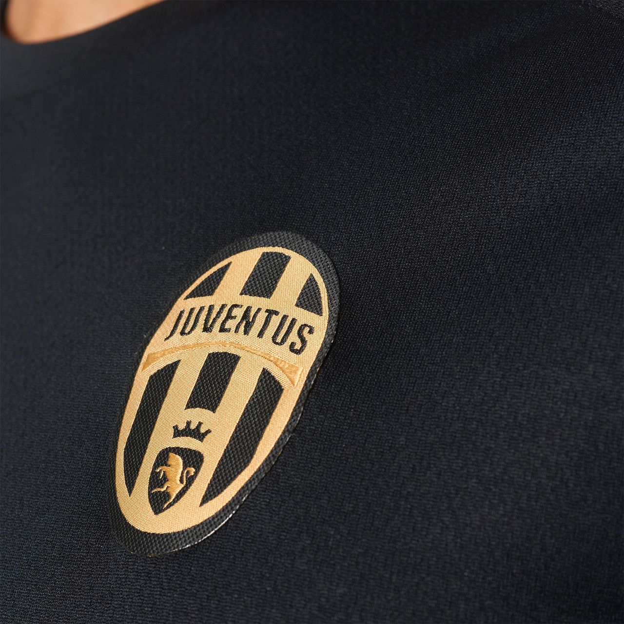 Black with a crew neck collar, the third jersey comes with the three stripes, adidas logo, Juventus crest and sleeve cuffs all in gold.