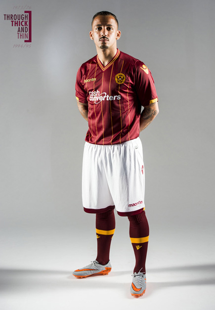 The away strip pays homage to the 1994/95 away kit, fondly remembered for the game against Borussia Dortmund in the old UEFA Cup at Fir Park.