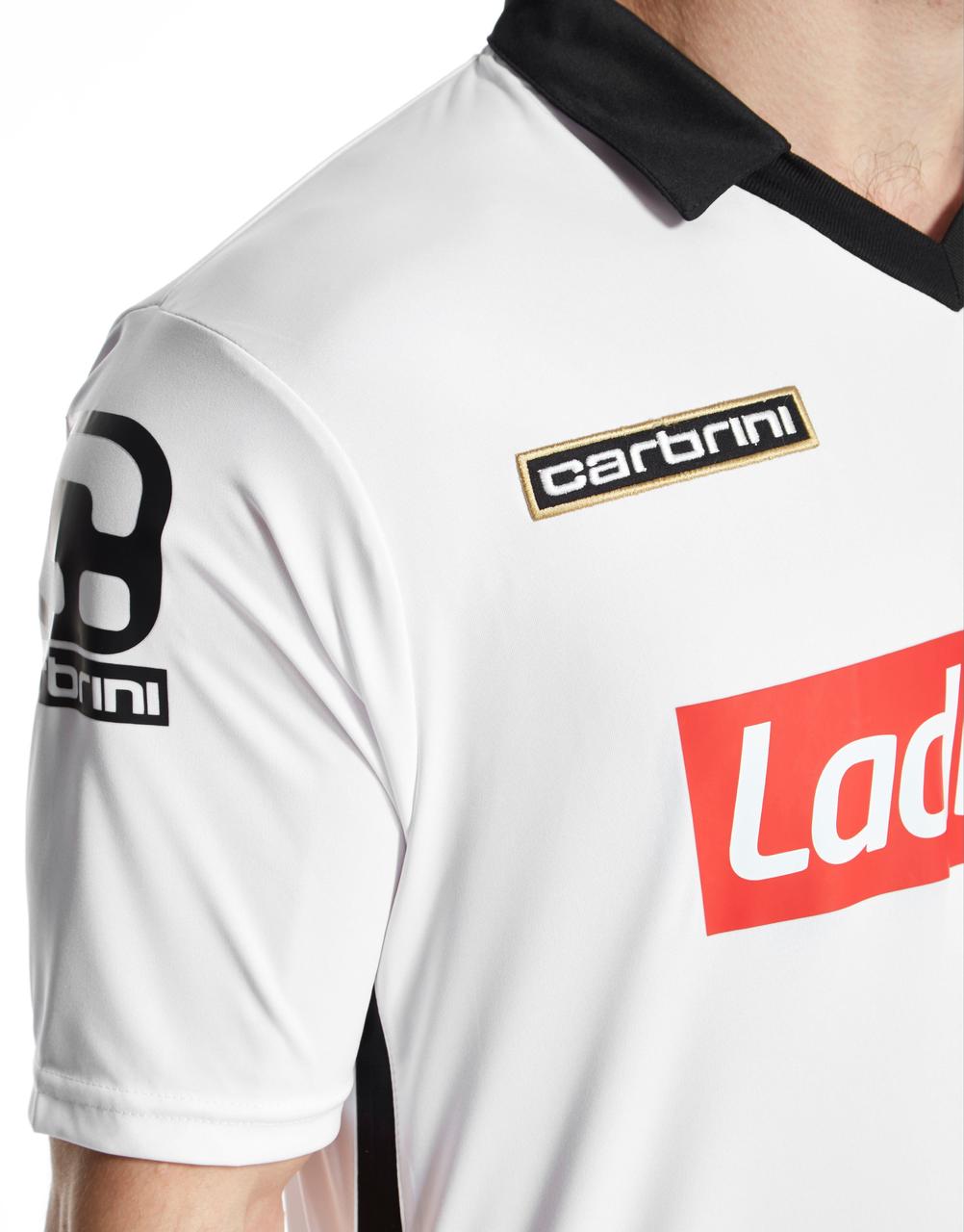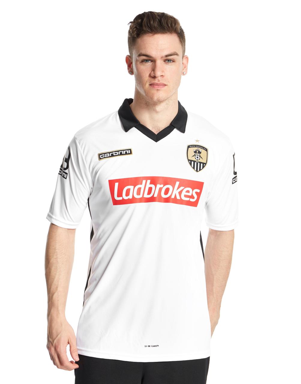 This is the Notts County FC Away 2015/16 Shirt from Carbrini. The away strip for the new season is crafted with Carbrini's X-Tech to wick sweat away from the skin for cool, dry wear. With a contrasting V-neck collar, finished with Carbrini branding and Notts County team badge to the chest.