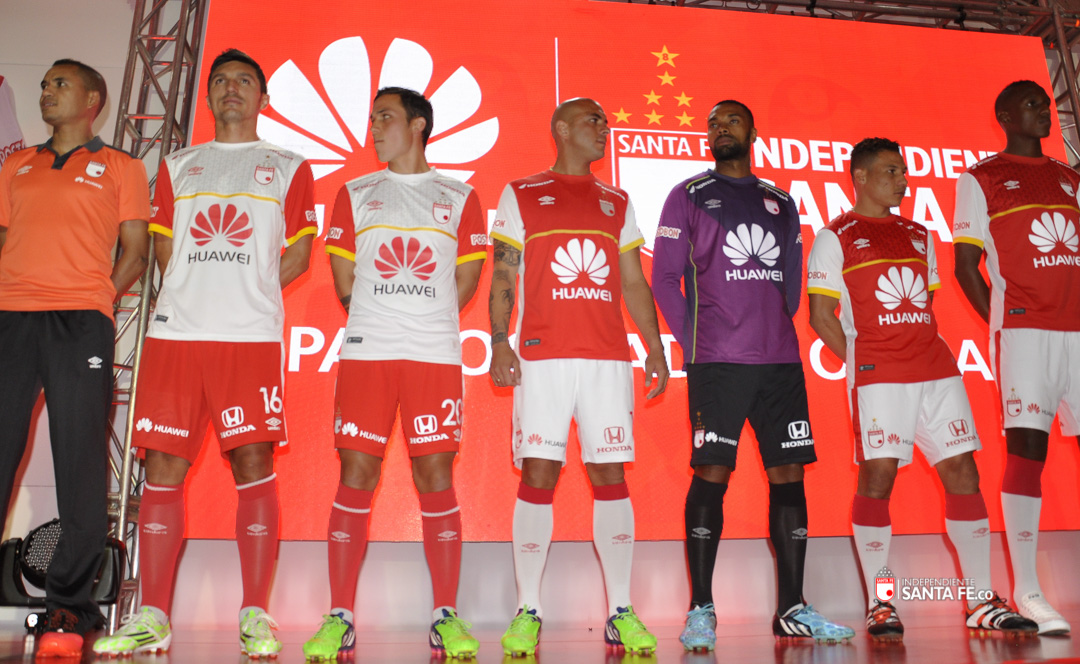 The white shirt is from the new Independiente Santa Fe Away kit, by Umbro, for the Bogota, Colombia side's 2015 campaigns.