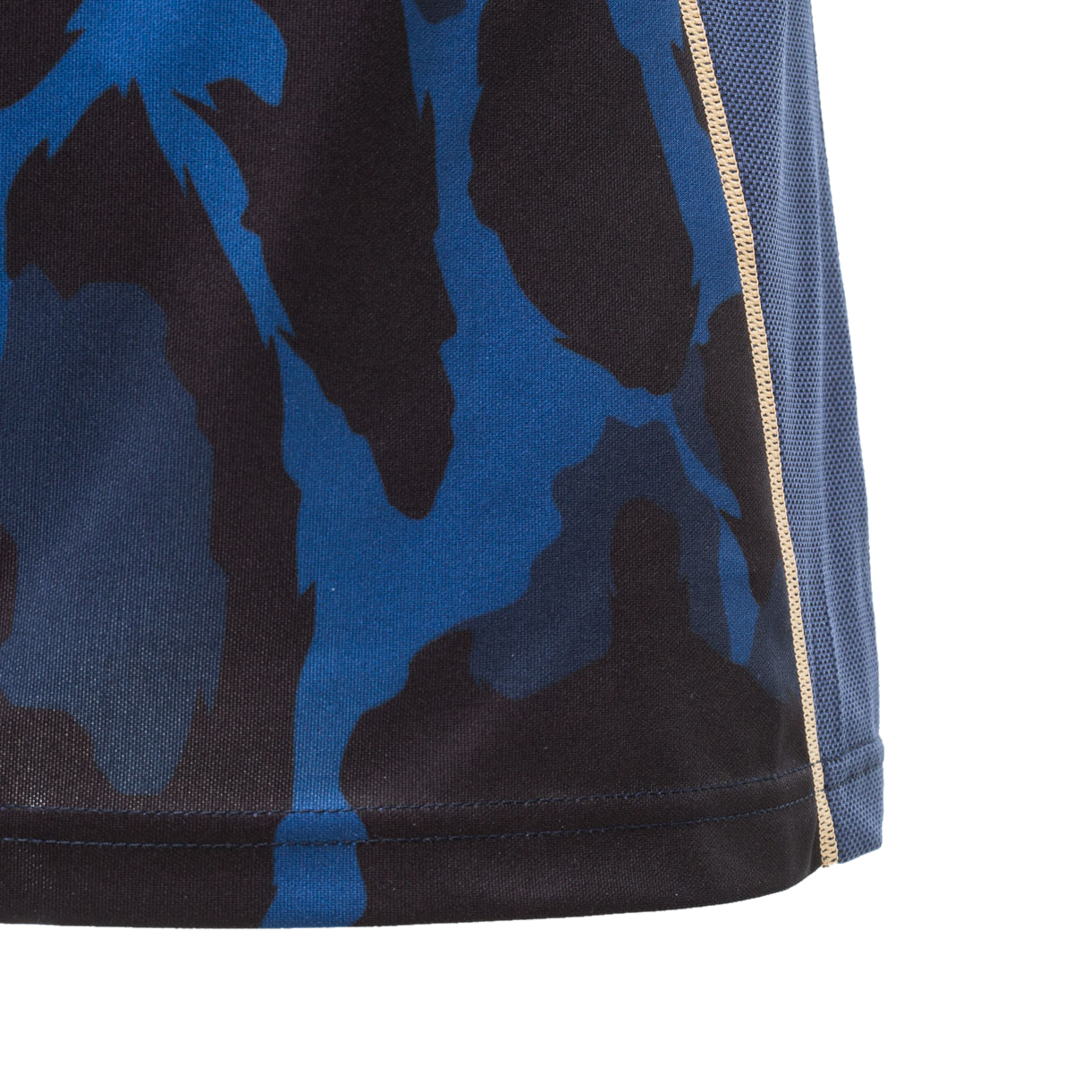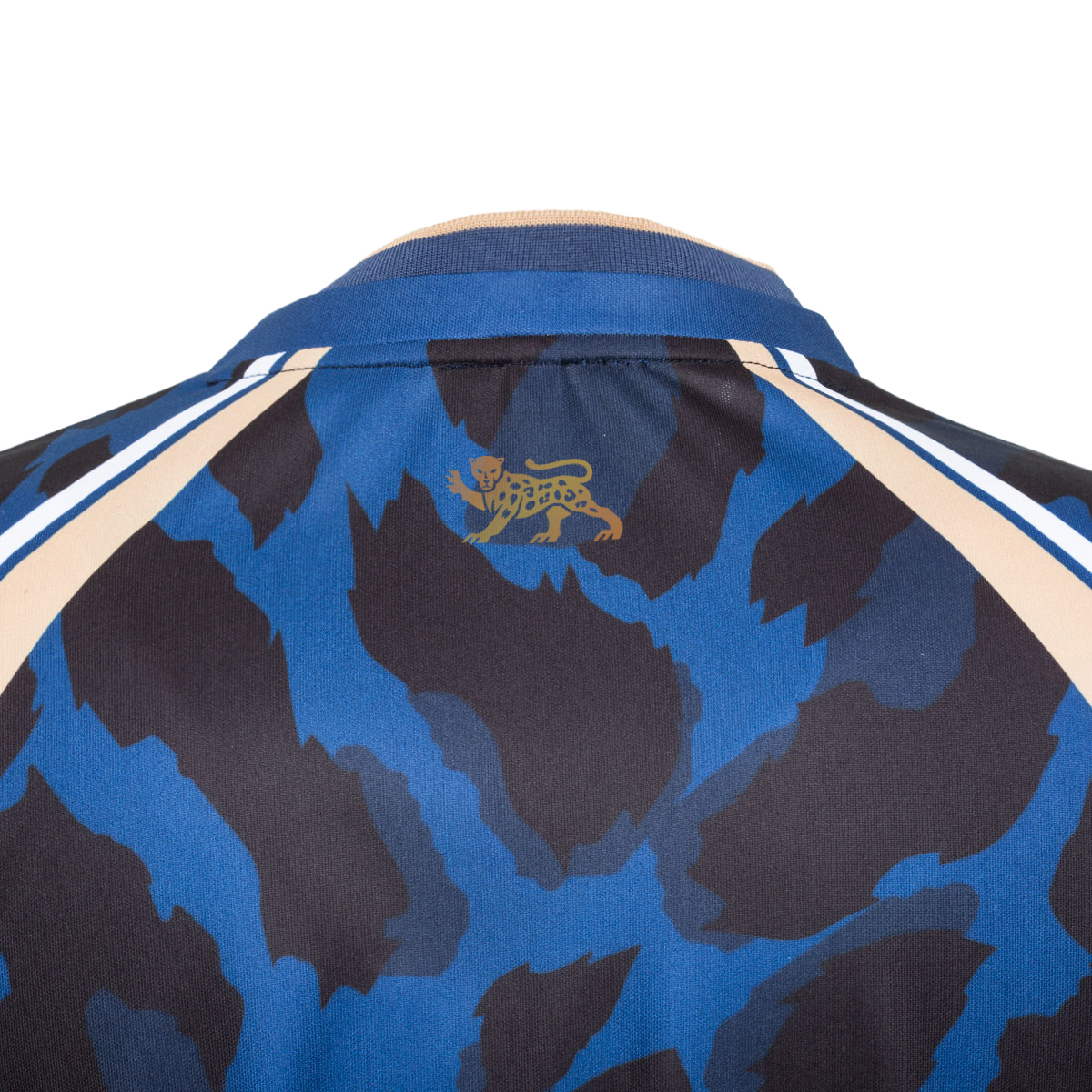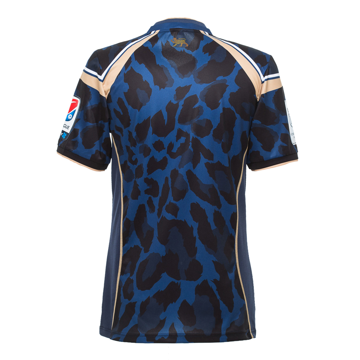 The shorts are in blue with black printing (minimal gold trim) and the socks blue with a gold and black animal print band. Pink and purple goalkeeper kits have also been released, in a style in keeping with the Home and Away outfield versions.