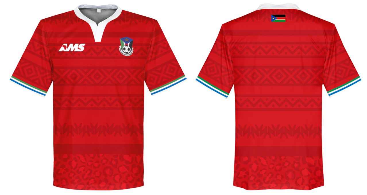 This is the new South Sudan 15/16 Away football shirt by AMS, which will be worn in their maiden World Cup Qualifying campaign, beginning this Wednesday.