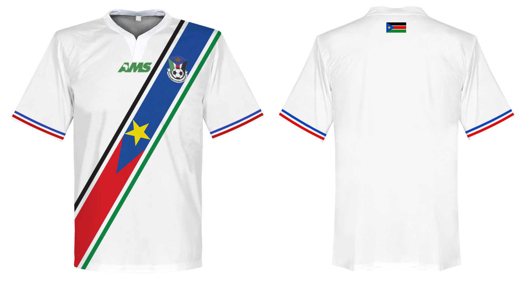 This is the new South Sudan 15/16 home football shirt by AMS, which will be worn in their maiden World Cup Qualifying campaign, beginning this Wednesday.