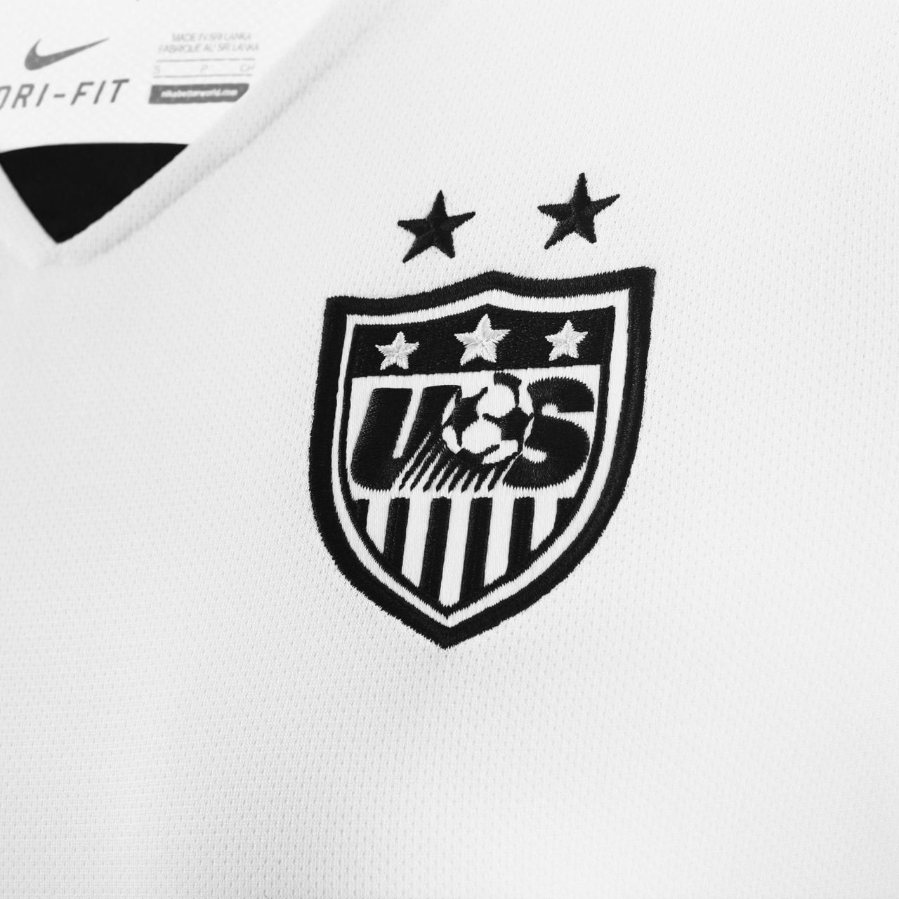 Two stars stitched above the U.S. Soccer Federation crest proudly signify the USA’s two World Cup victories in 1991 and 1999, while a black triangular insert punctuates the new streamlined, modern V-neck collar.