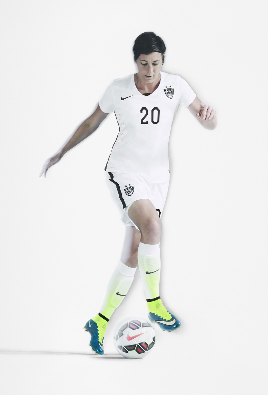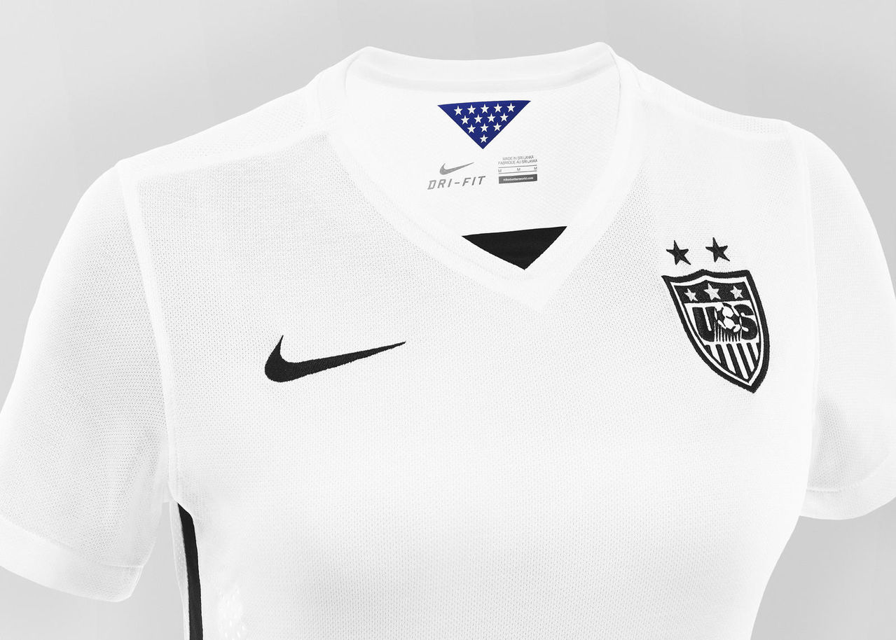 The simple, classic aesthetic belies the uniform’s innovative features. Informed by 3-D body mapping, the 2015 USWNT home uniform features a new, fully-articulated women’s-specific fit to maximize natural movement, comfort and performance. The dual-knit cotton and recycled polyester fabric provides a softer feel.