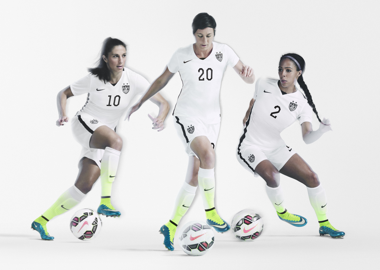 This is the new U.S. Women’s National Team (USWNT) home football kit from Nike which the team will wear competing for a third Women’s World Cup title in Canada this summer.