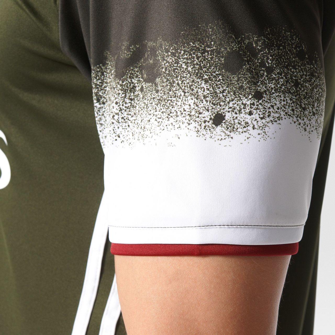 The adidas three stripes have been moved from the sleeves to the side of the jersey to allow for a more creative design on the sleeves, with a white spray paint effect which pays tribute to the Italian flag.