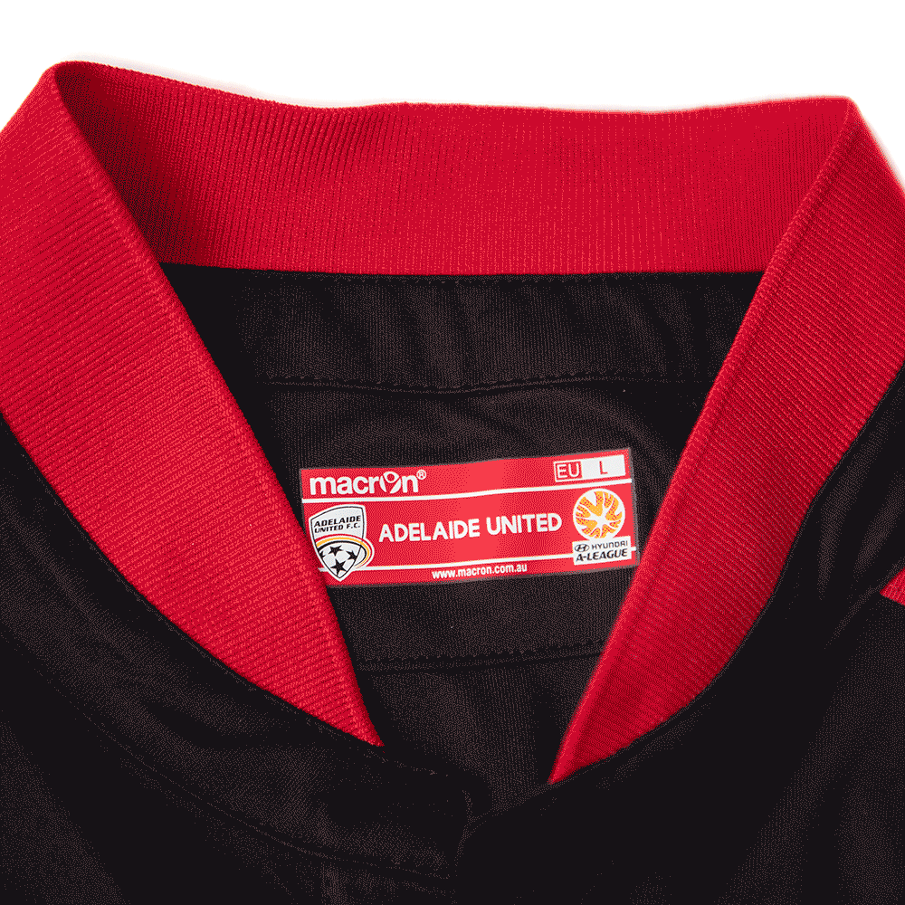 The Reds will again opt for a predominantly black strip, which is tastefully accented by red trimming on the sleeves, shorts, and socks. The shirt has a mid-length collar that can be comfortably worn upright, or neatly folded down, flowing into a neat ‘V’ shape at the base of the neck where three buttons clip it together seamlessly. Taking on supporter feedback from previous seasons, Adelaide and Macron will offer a more affordable replica kit (in home, away, and clash), as well as an authentic version of the Reds’ home strip. However, the replica kits will maintain the same quality and style as the authentic.