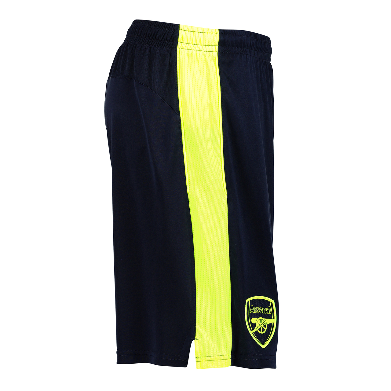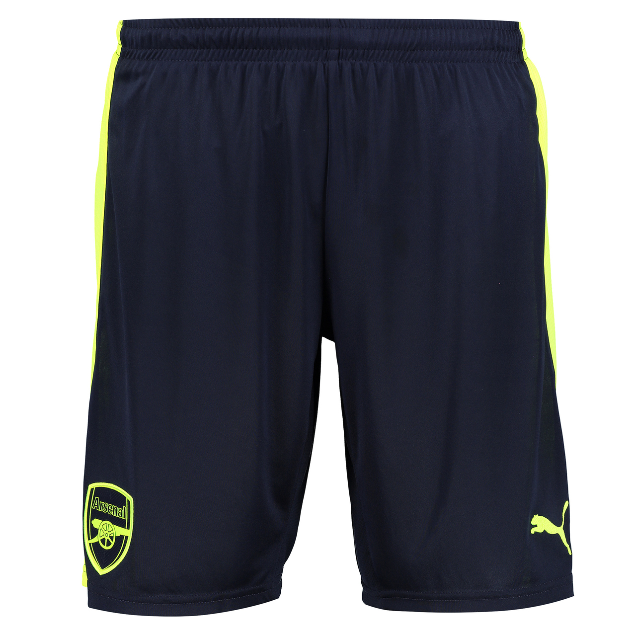 This is the new Arsenal 16/17 Third kit by Puma. The third kit is dark blue with bright yellow detail and the Puma Form Stripe along the sleeves and cuffs, with dark blue shorts and bright yellow socks.