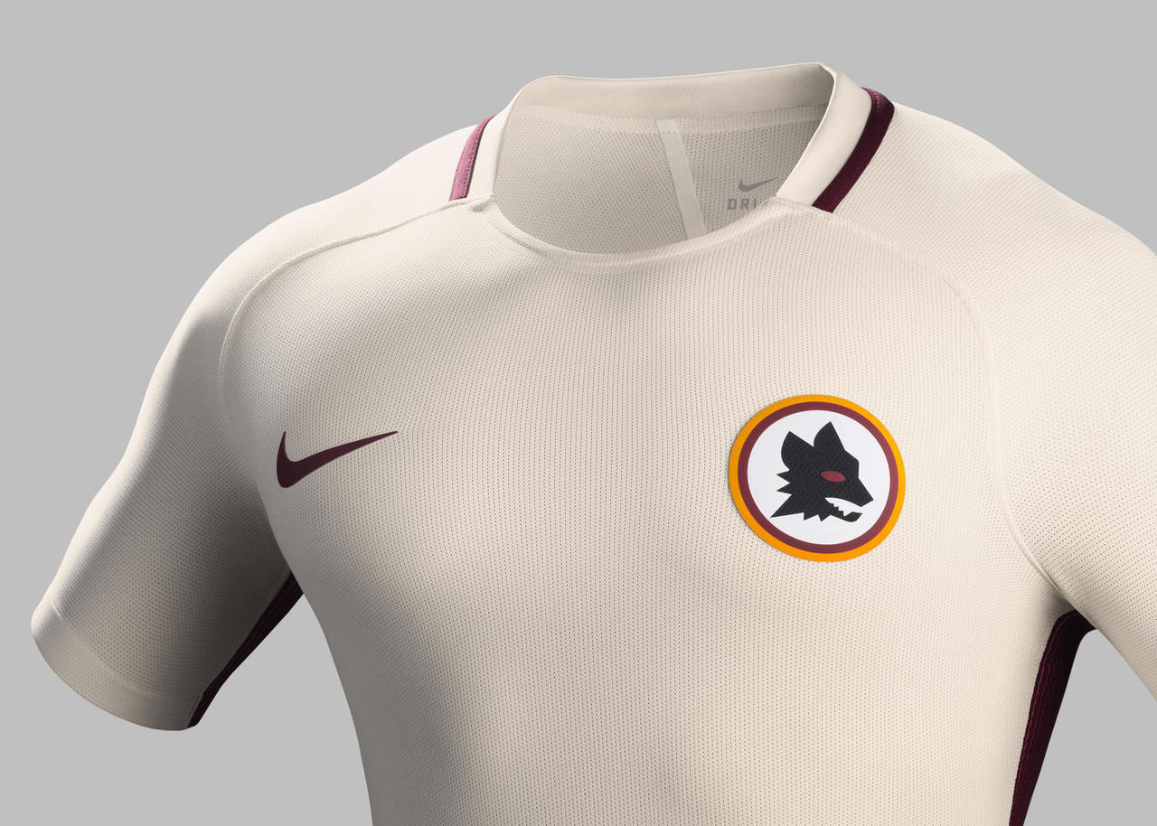 Celebrating its 90th anniversary, AS Roma enters the 2016-17 season with a new marble white away kit featuring the return of the city's revered Roman symbol, the wolf (or "Lupetto"), on a red and yellow circular crest.