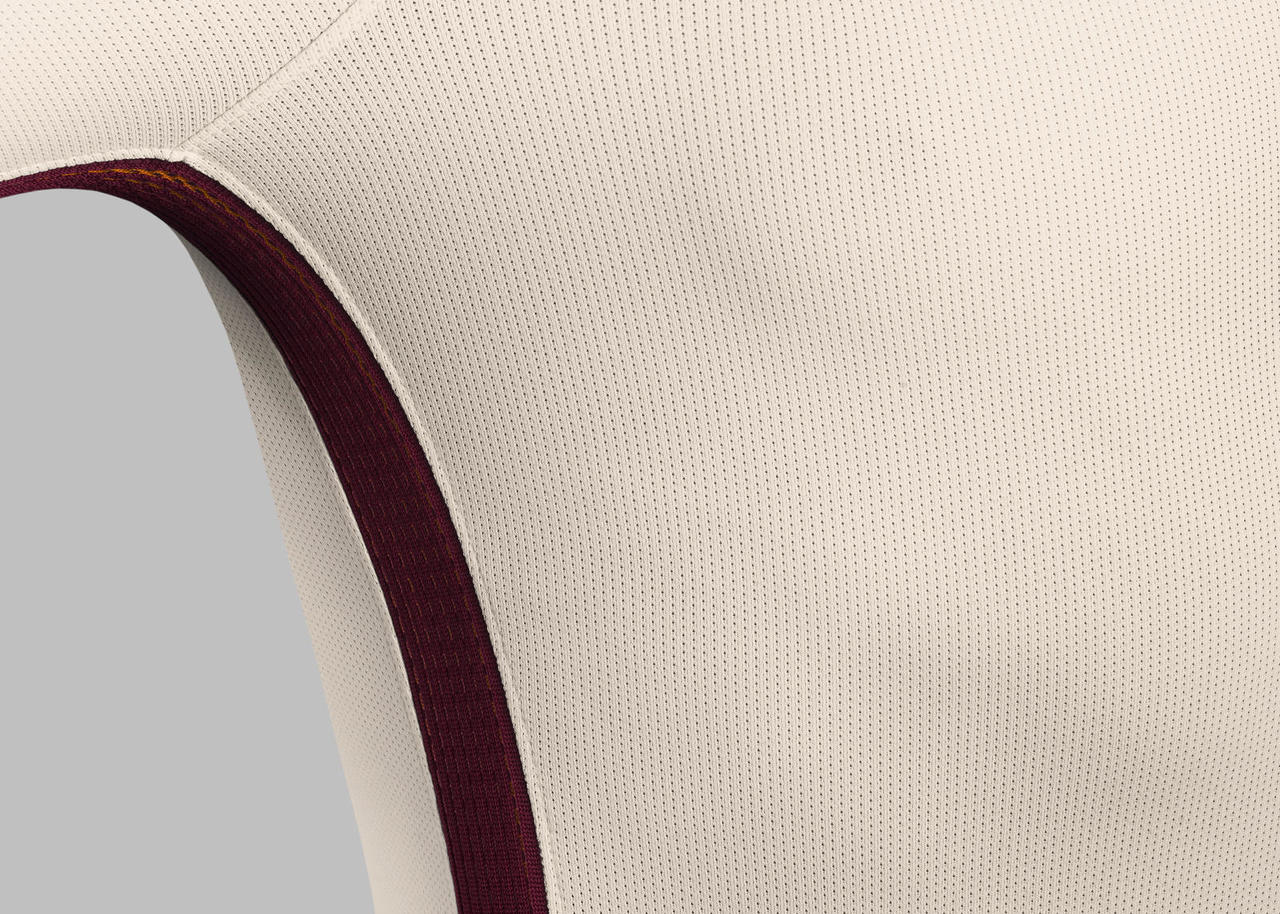 The sides of the kit have a red stripe that runs the length of the shirt and shorts. Expanding when the player is in motion, it maximizes ventilation and reveals a subtle underlying yellow flash. Marble white socks, with a red linear graphic on the calf, accentuate speed.