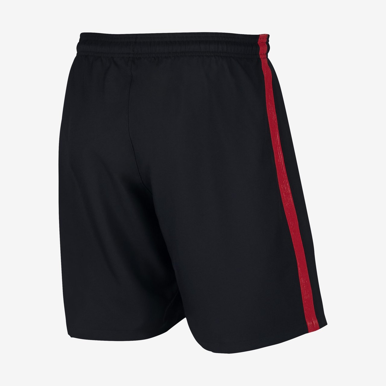 The sides of the kit have a red stripe that runs the length of the shirt and black shorts. Expanding when the player is in motion, the stripe maximizes ventilation and reveals a flash of white underneath.