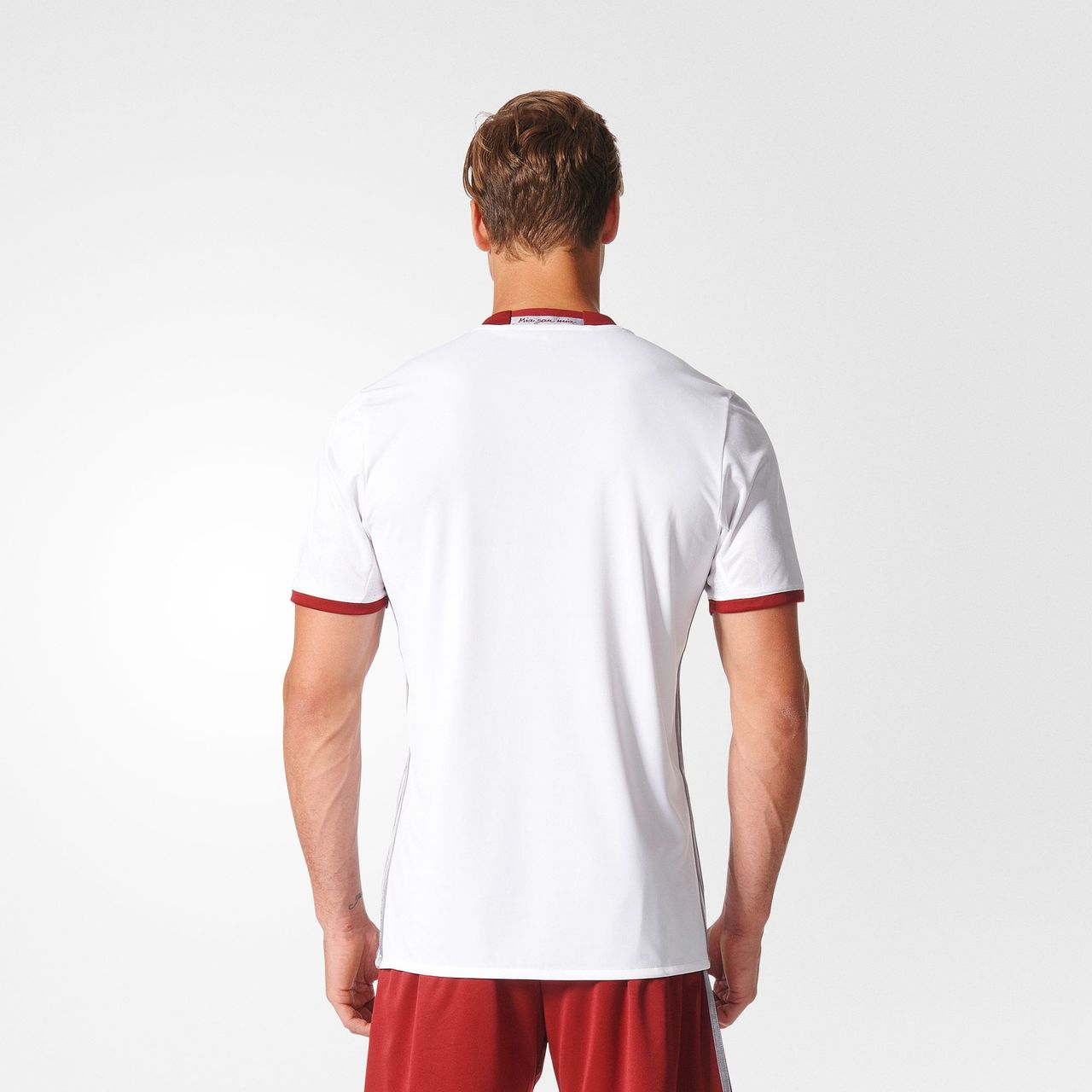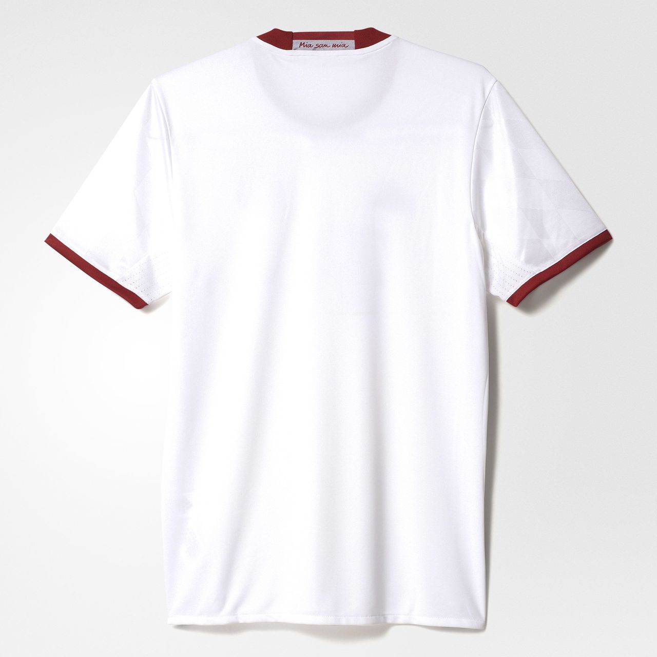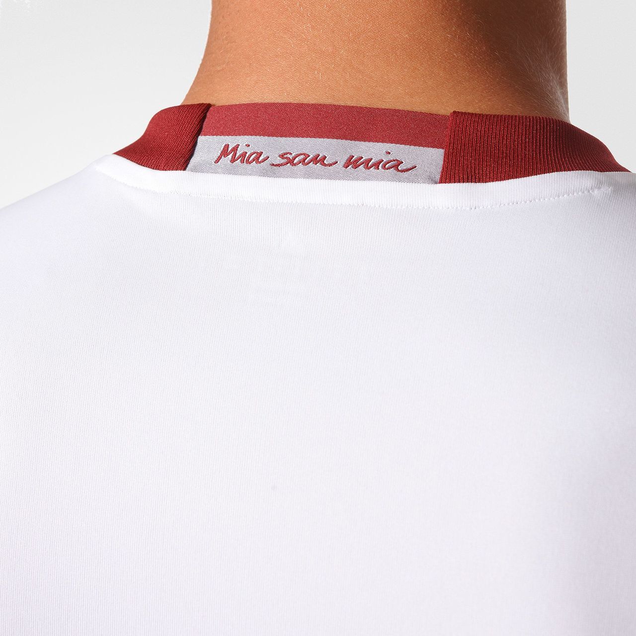 The shirt also features the Bayern Munich motto "Mia san mia," which translates as "We are who we are," on the inside of the shirt's collar.