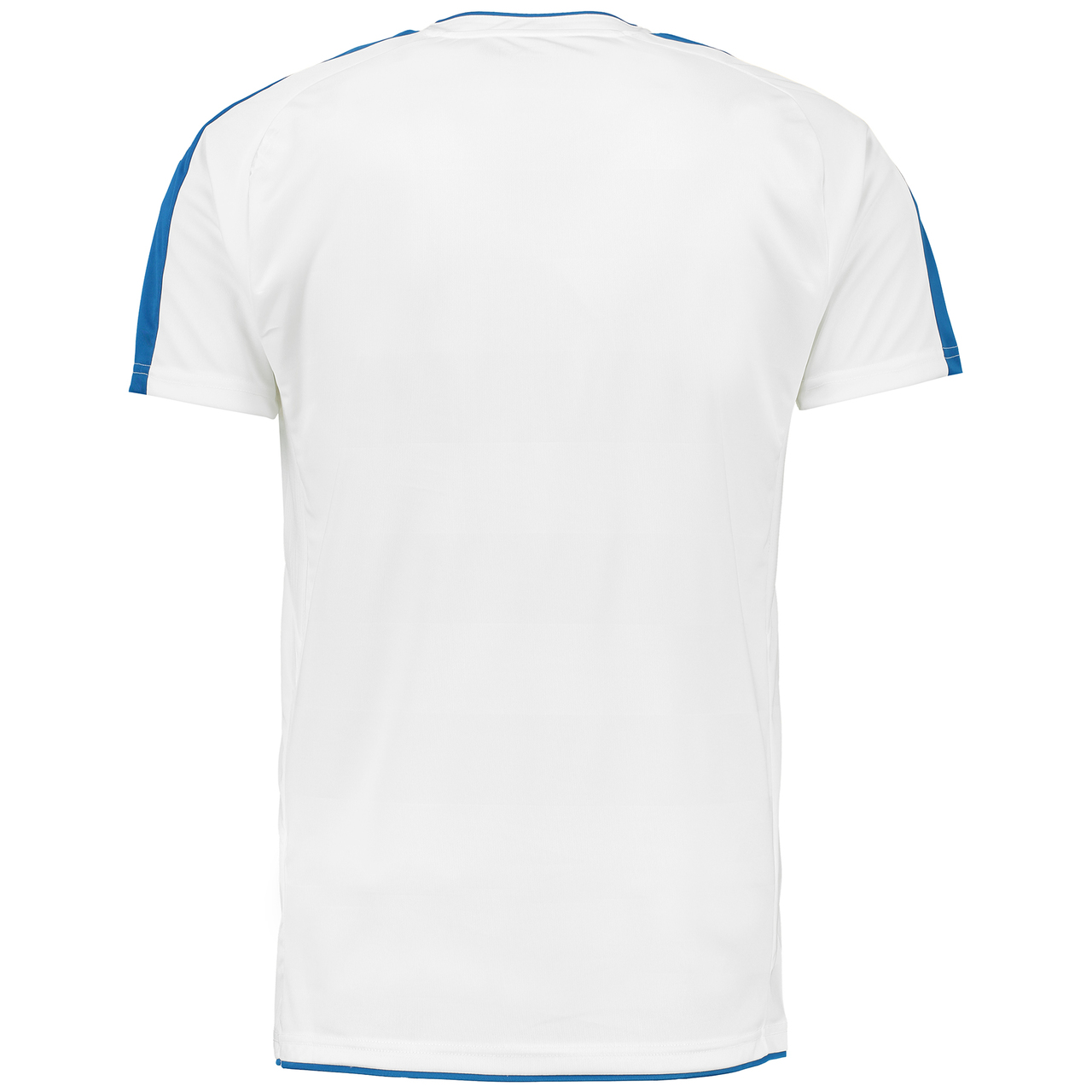 The Czech Republic's new away shirt design remains classic in white with understated royal blue detailing on the hem, collar and Form Stripe panels along the sleeves. The Form Stripe continues down on the shorts, creating a sleek appearance.