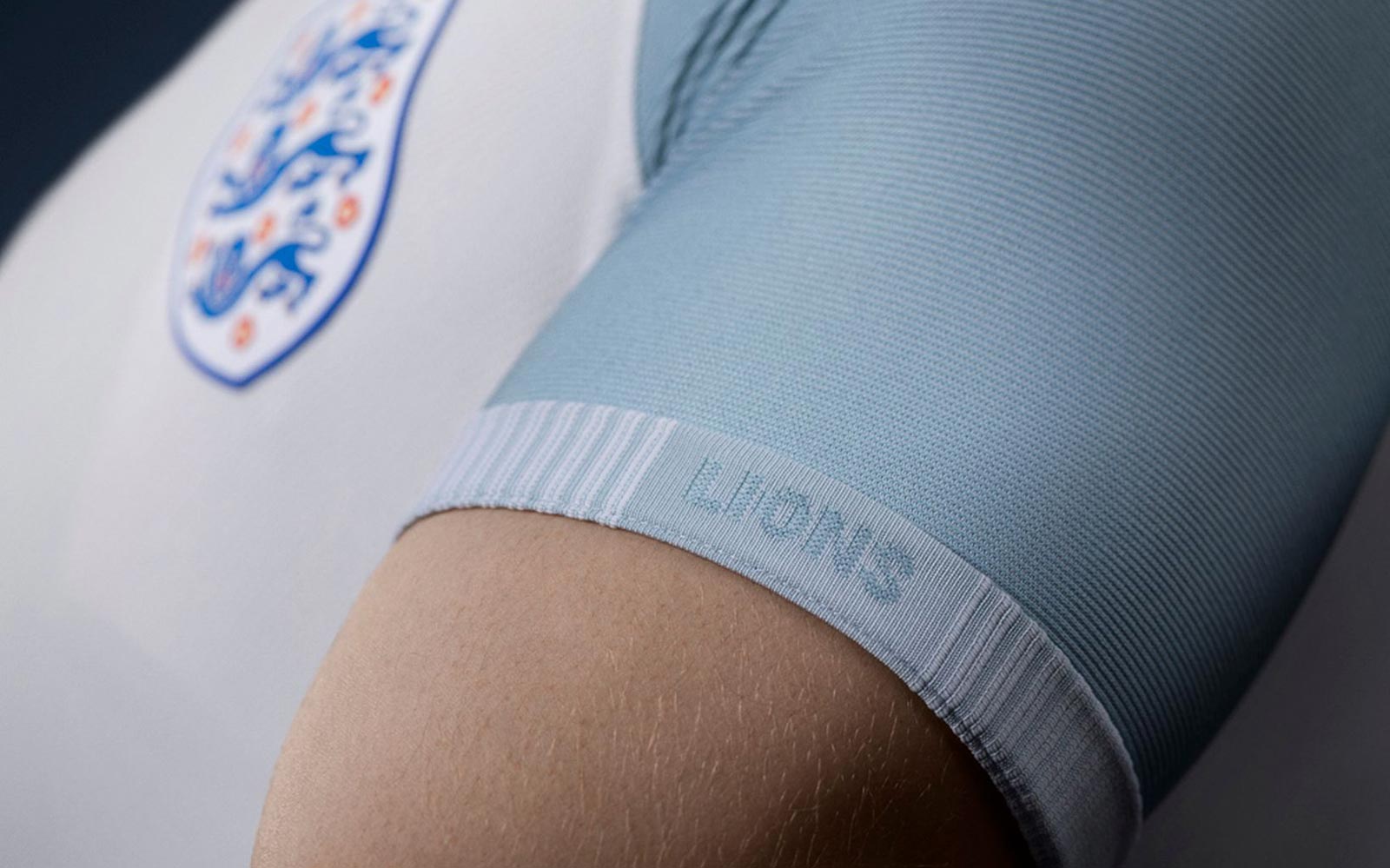 The new home kit features a classic white English body with a contrasting light blue shoulder and sleeve produced by cross-dyeing white with the blue used elsewhere in the kit. On the chest, engineered knit zones create a geometric pattern that enhances fit, with smaller mesh shapes at the bottom of the shirt providing extra cooling.