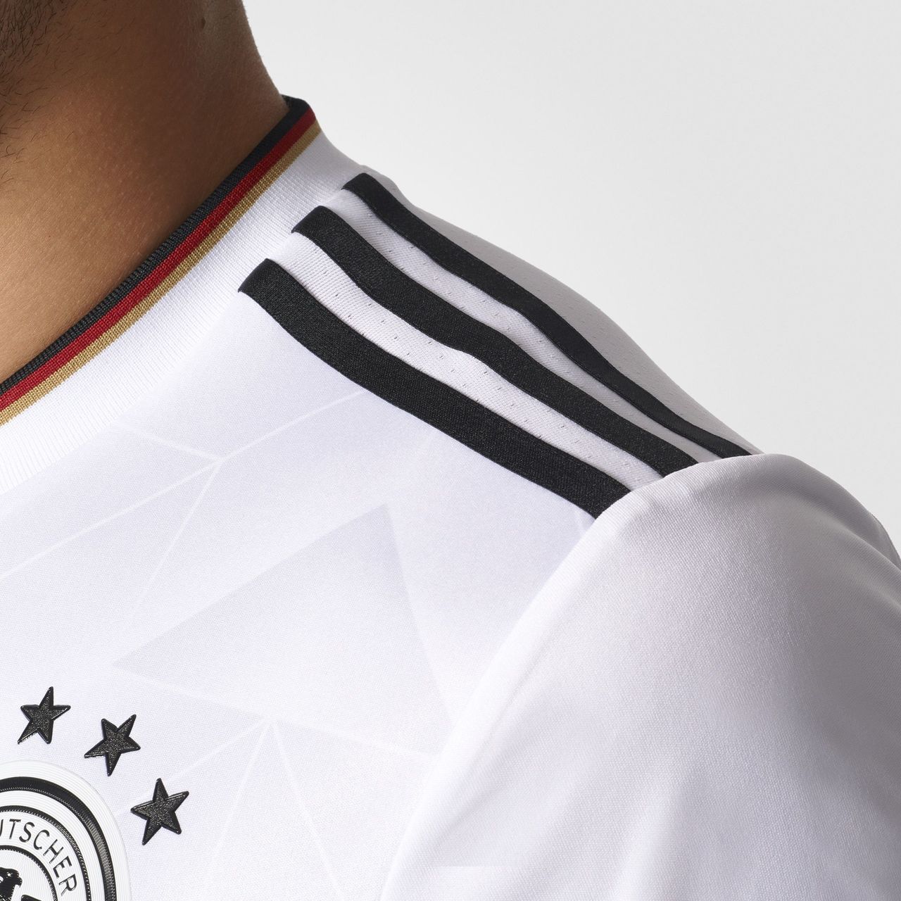 The home shirt, which the "Mannschaft" will now be wearing on their way to defend the World Cup in Russia and during the FIFA Confederations Cup (17 June to 2 July 2017), is also adorned by a black, red and gold collar and the reigning world champions' emblem.